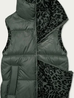 Krátká dámská vesta v khaki barvě se stojáčkem (B8152-11)