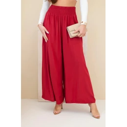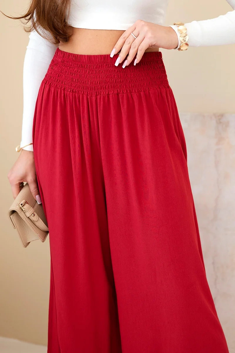 Dámské viskózové kalhoty s elastickým pasem bordové