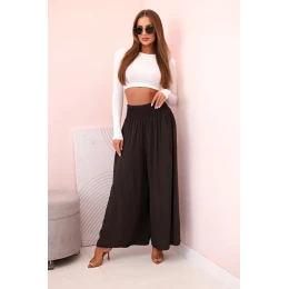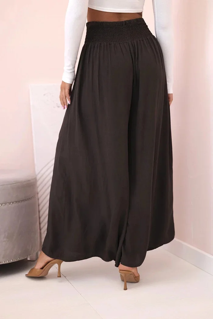 Dámské viskózové kalhoty s elastickým pasem hnědý