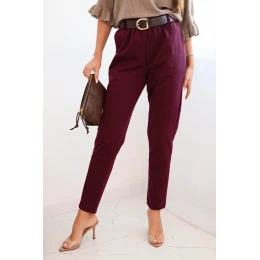 Dámské viskózové kalhoty s páskem a zúženými nohavicemi bordové