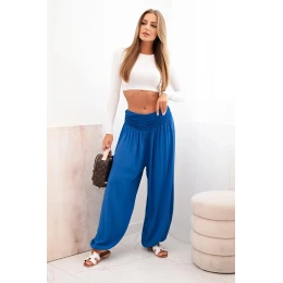 Dámské viskózové kalhoty s širokými nohavicemi a volánky chrpově modrá