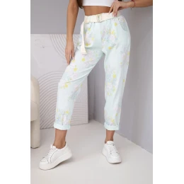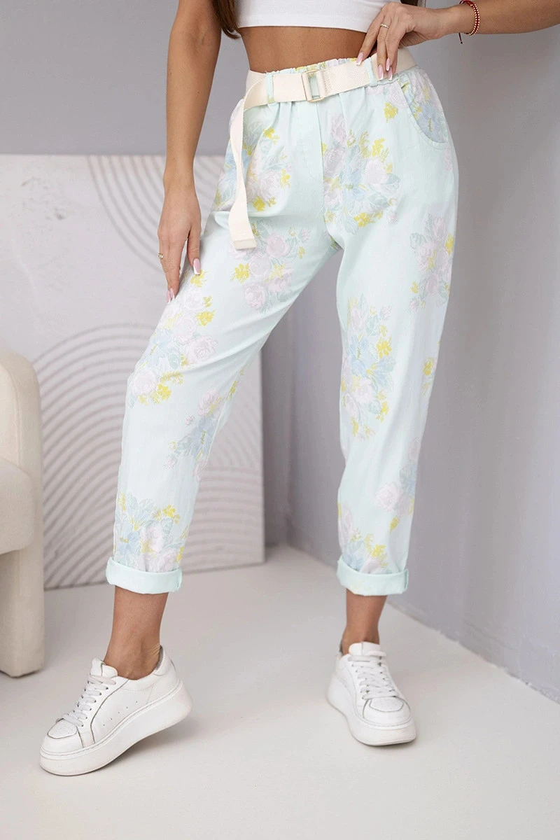Kalhoty mají elastický pas a přiložený látkový pásek, který krásně podtrhuje pas. Zúžené nohavice zakončené manžetami dodávají celku moderní charakter. Květinový potisk je činí skvělou volbou na jaro a léto – ideální pro každodenní stylizace, procházky a výlety.