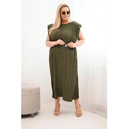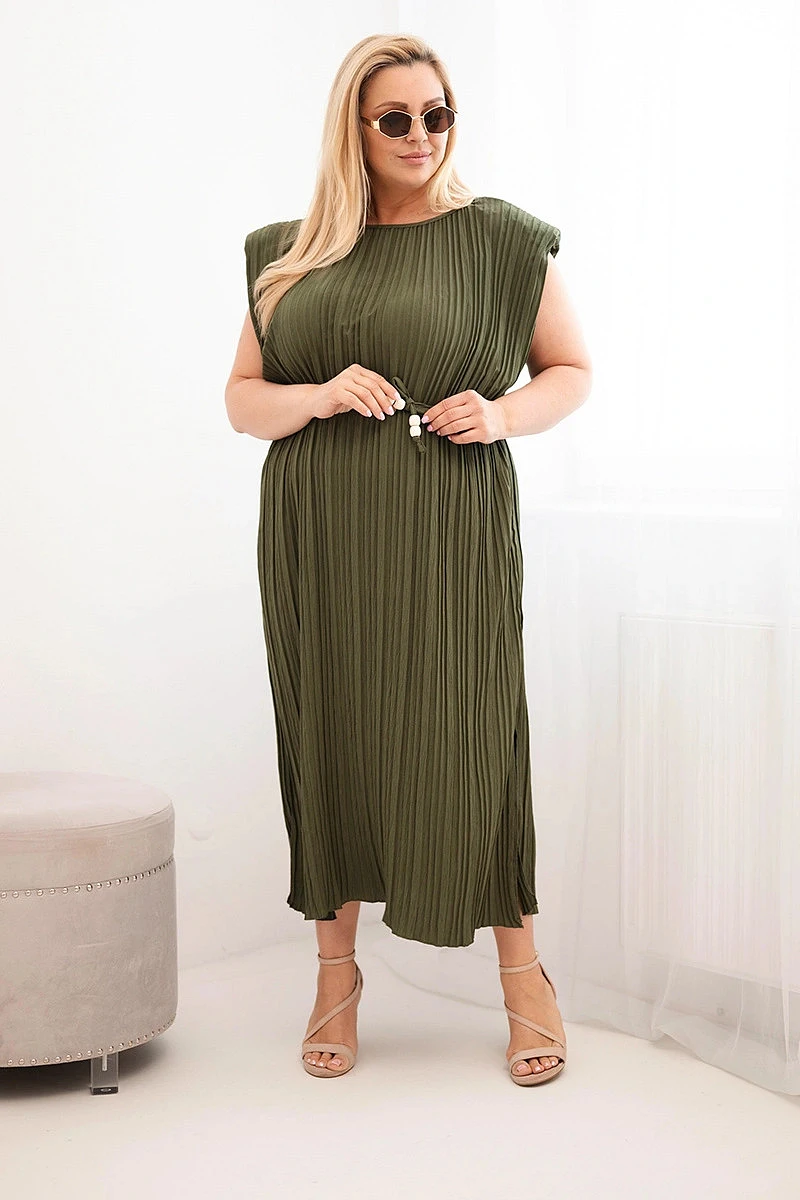 Dámské viskózové plisované šaty Plus Size s vázáním khaki