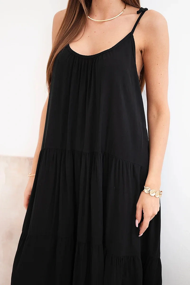 Dámské viskózové šaty na model 22141212 ramínkách černá - K-Fashion