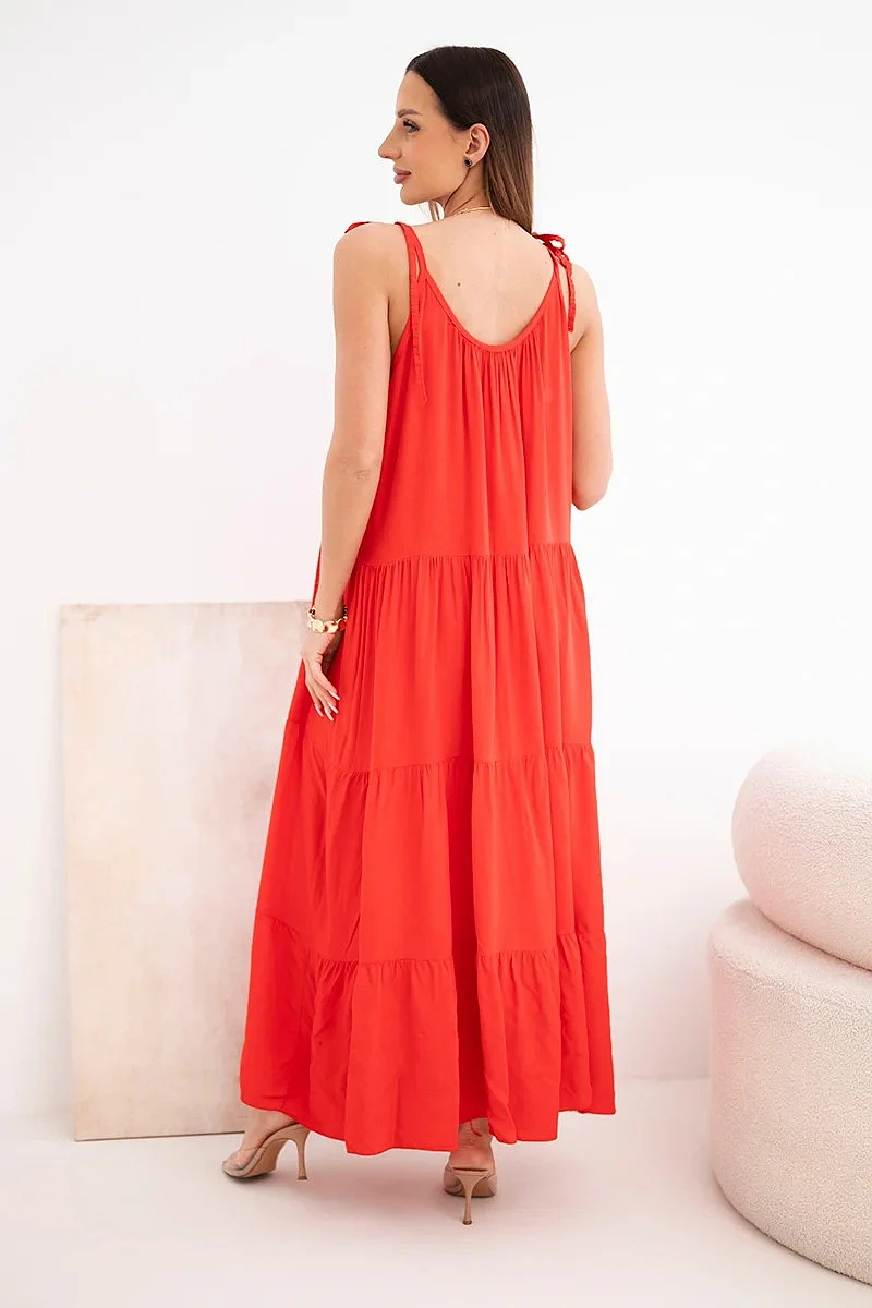 Dámské oversized šaty jsou výjimečně ženskou a pohodlnou volbou na teplé dny, která se skvěle hodí pro každodenní stylizace i během prázdninových cest. Maxi model vyniká lehkým, vzdušným střihem a jemným řasením v horní části, které se krásně přizpůsobí postavě. Ramínka zavazovaná na ramenou umožňují individuální nastavení délky, což zvyšuje komfort nošení a dodává celku jemný, romantický charakter.
