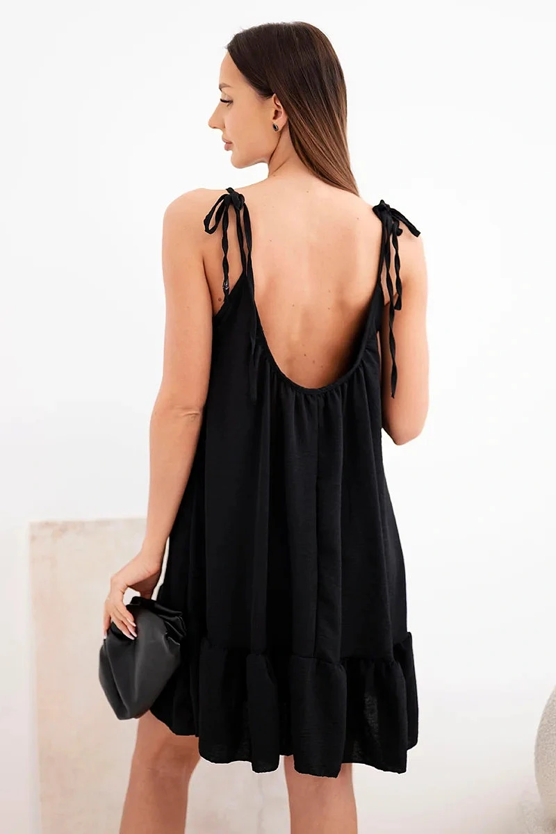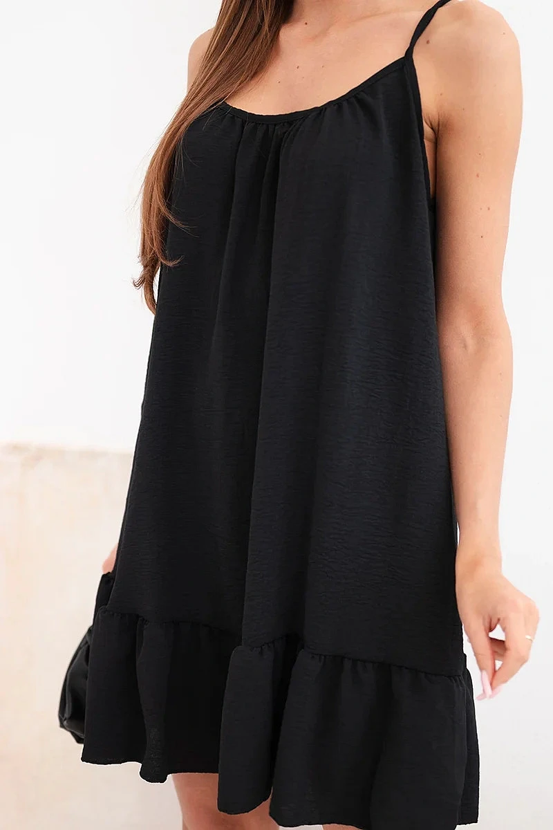 Dámské viskózové šaty na ramínka s volánem a zavazováním černá