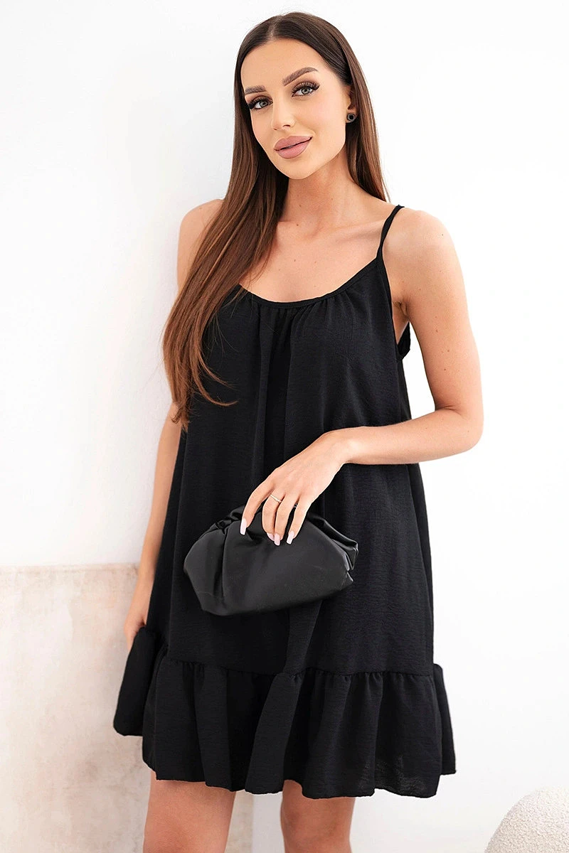 Dámské viskózové šaty na ramínka s volánem a zavazováním černá