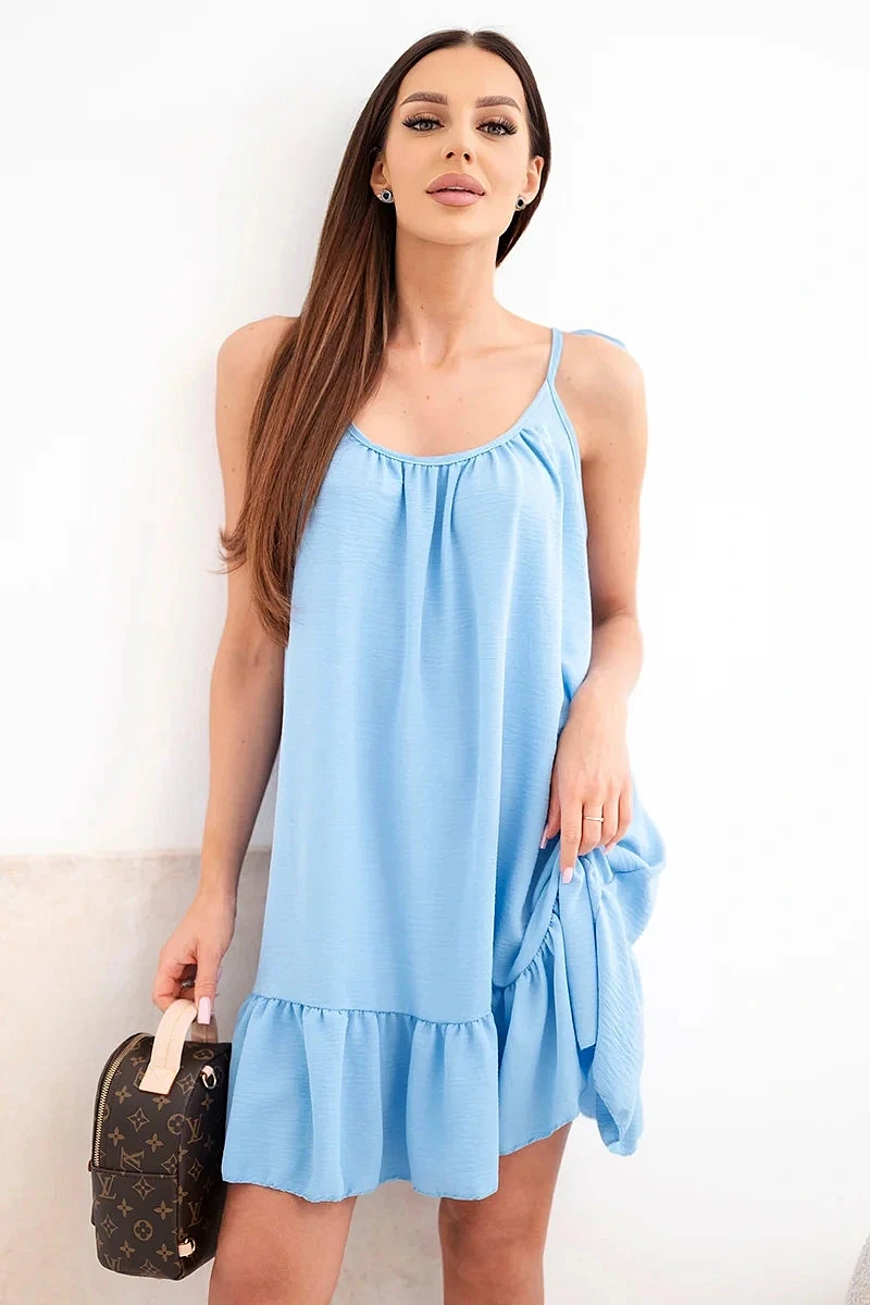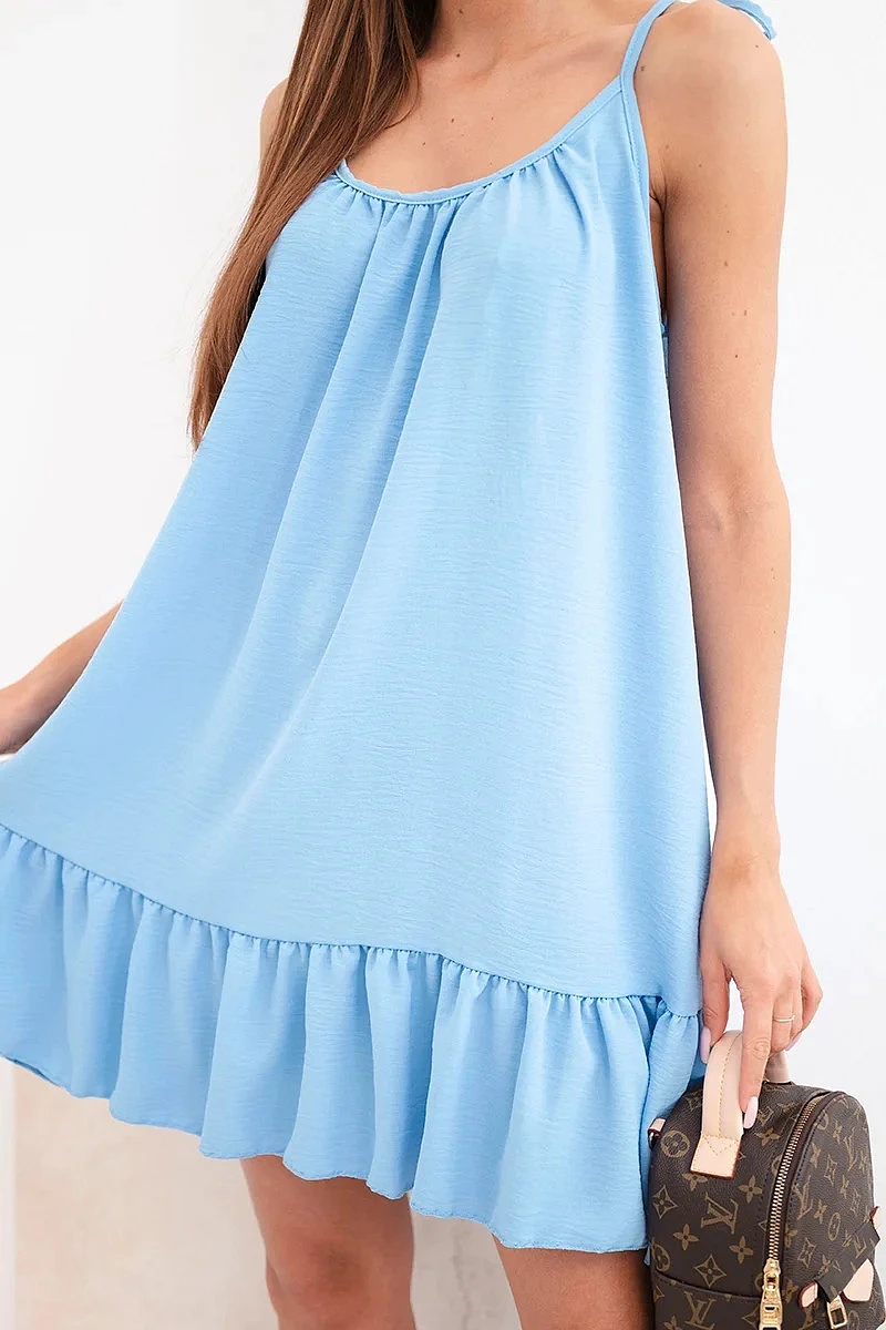 Dámské viskózové šaty na ramínkách s volánem a vázáním modrá