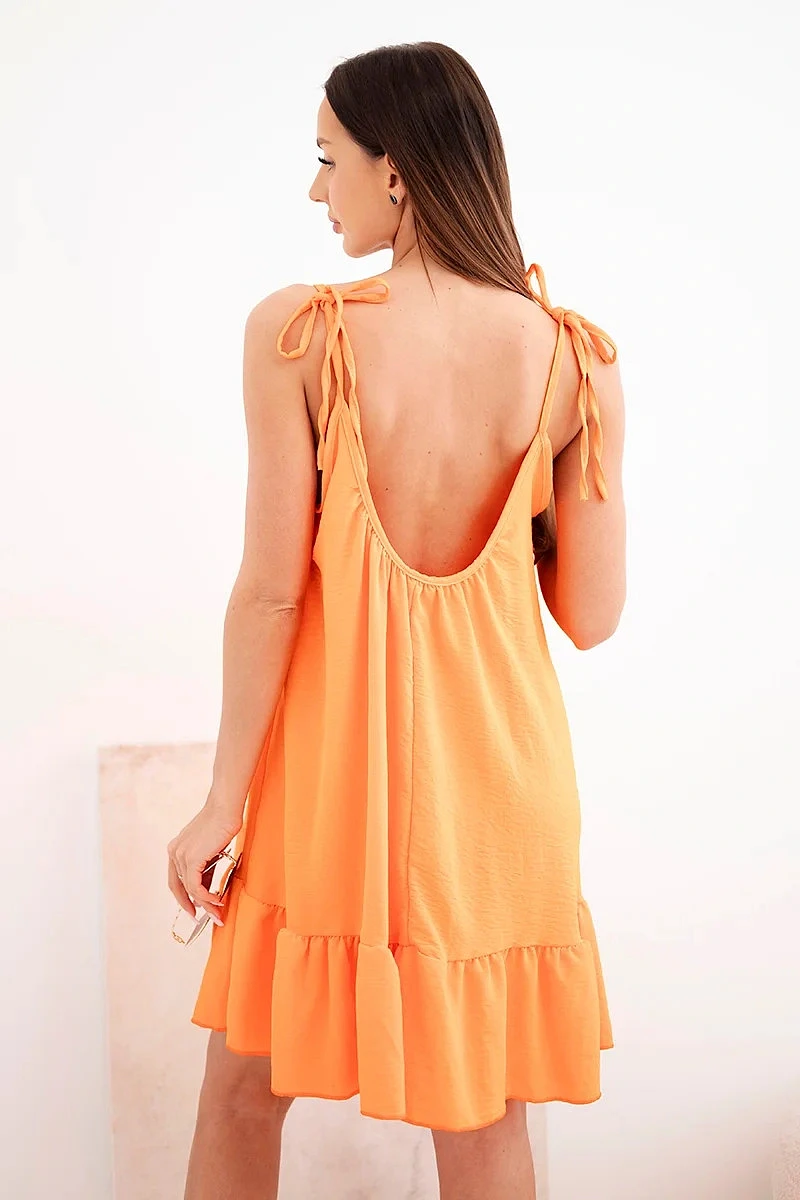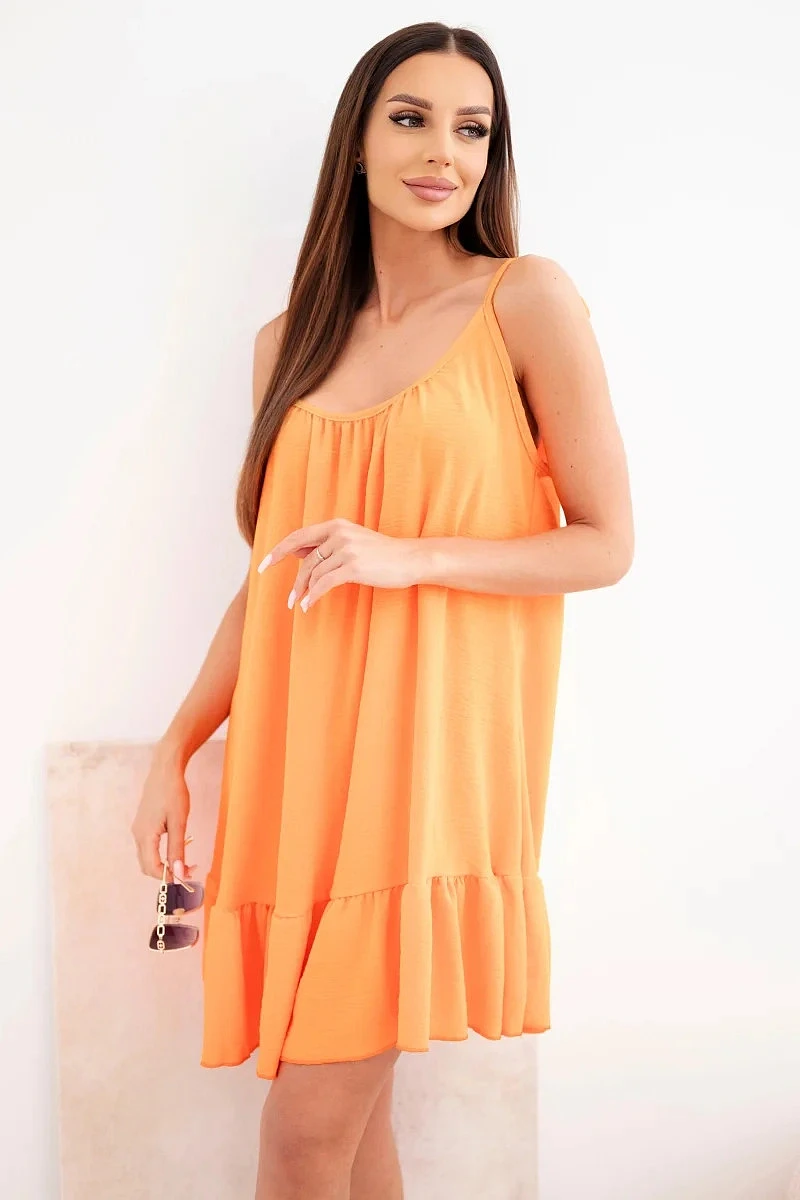 Dámské viskózové šaty na ramínkách s volánem a vázáním oranžové