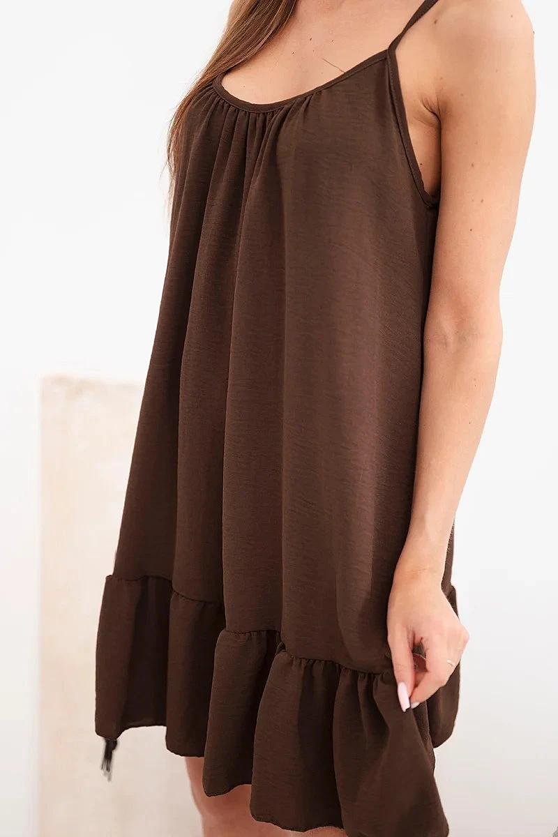 Dámské viskózové šaty na ramínkách s volánem a zavazováním hnědá