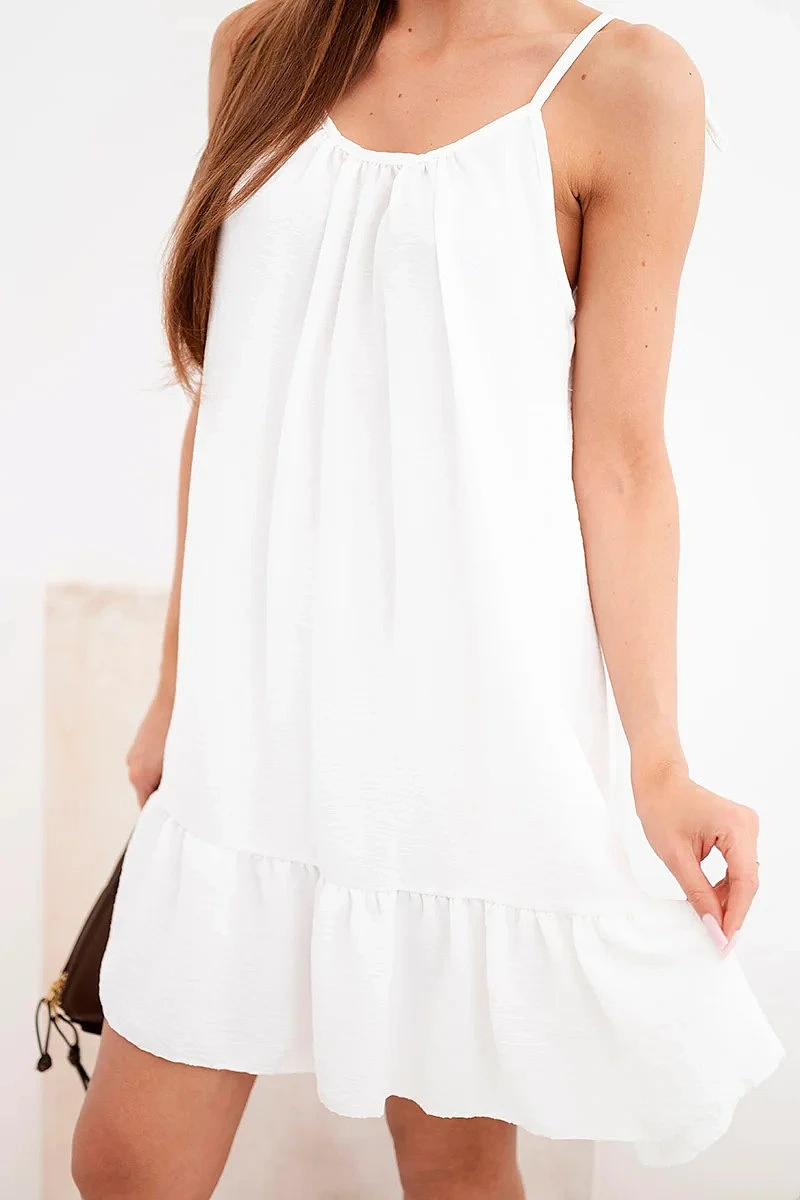 Dámské viskózové šaty na ramínkách s volánkem a zavazováním bílá
