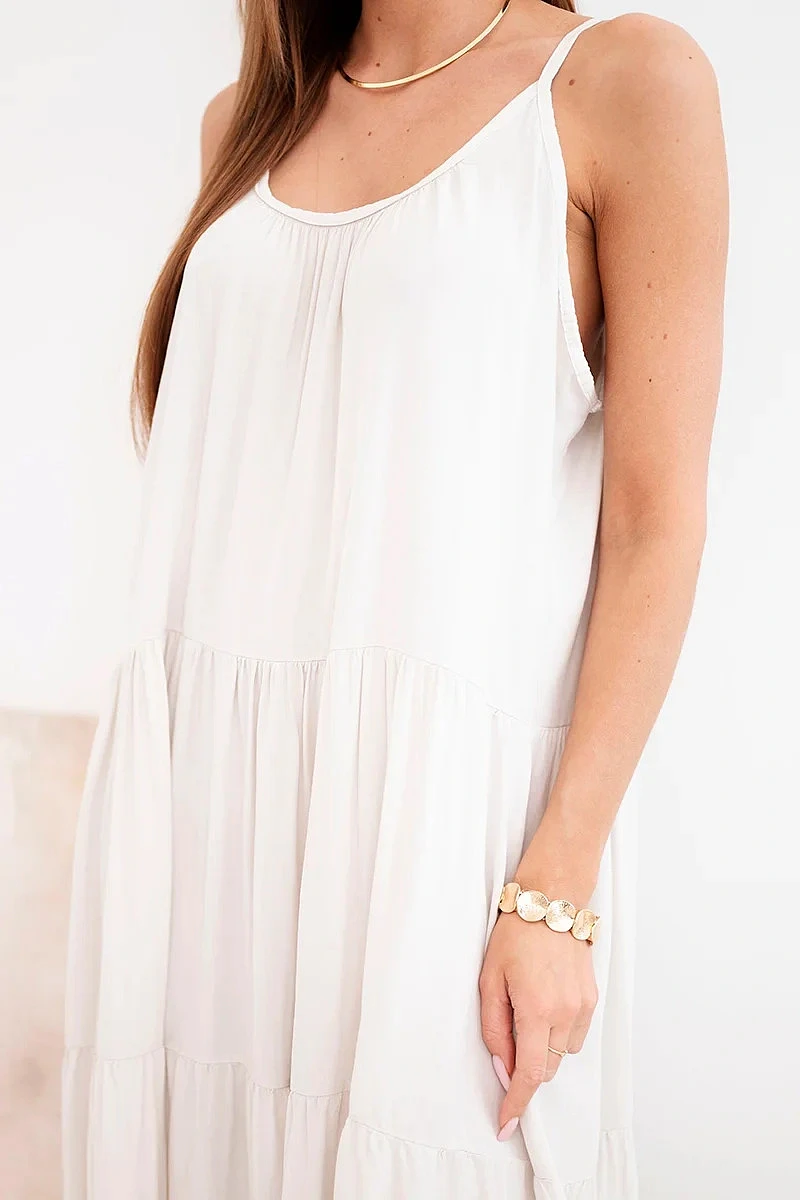 Dámské viskózové šaty na zavazovací ramínka béžová