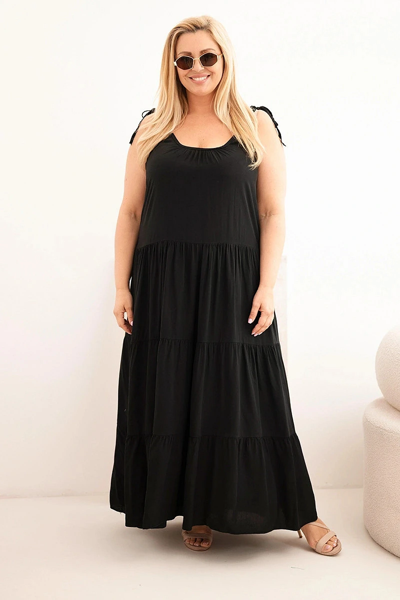 Dámské viskózové šaty na zavazovacích ramínkách černá