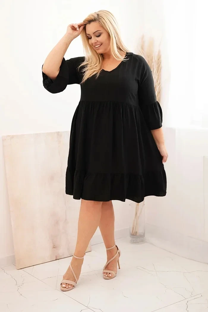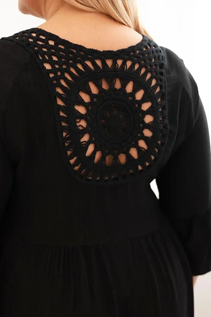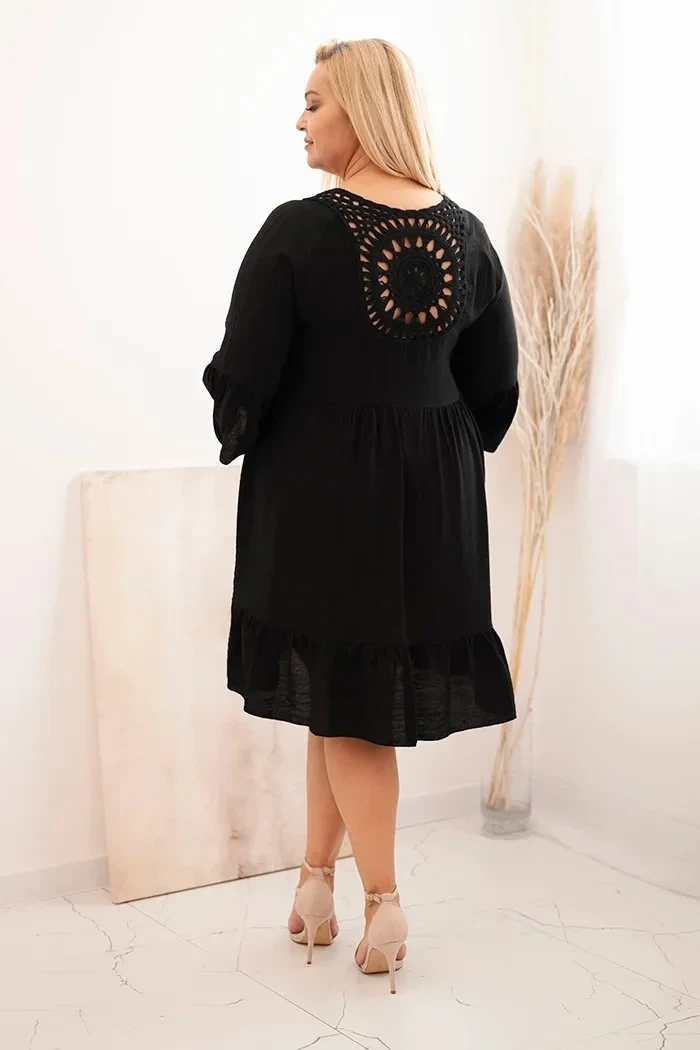 Dámské viskózové šaty Plus Size s ažurovou ozdobou černá