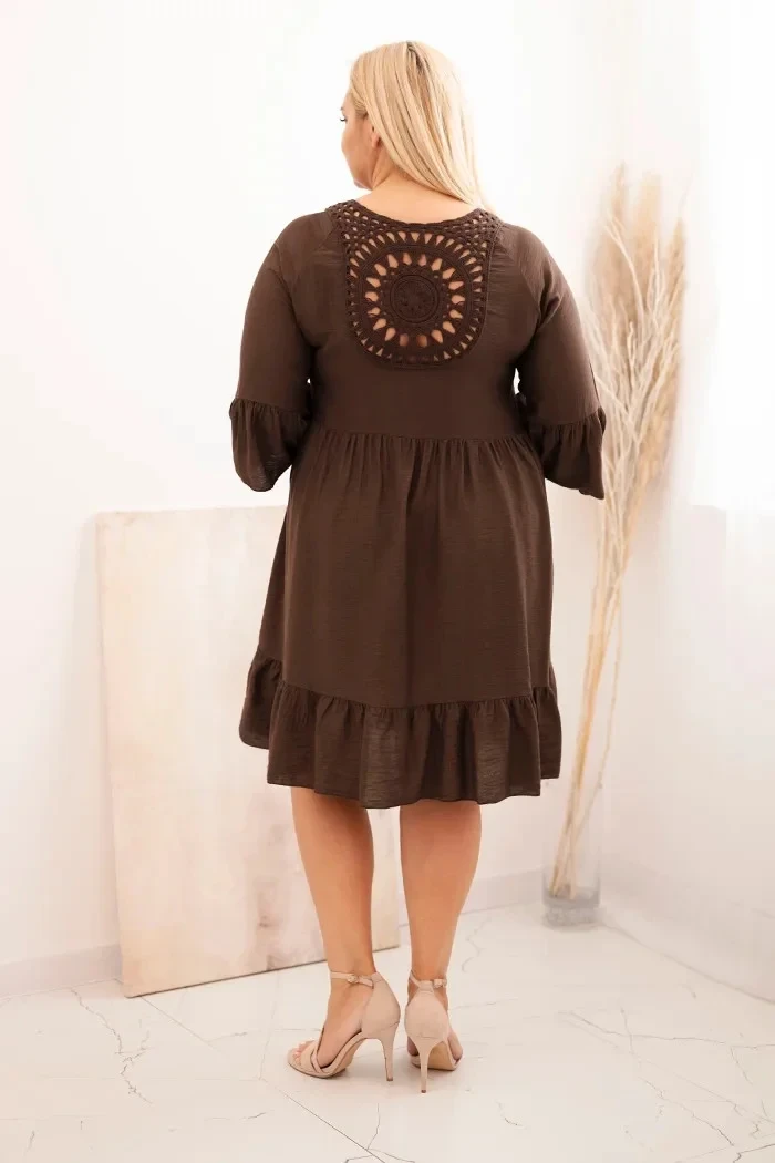 Dámské viskózové šaty Plus Size s ažurovou ozdobou hnědá