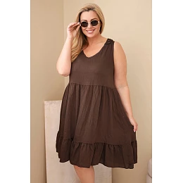 Dámské viskózové šaty Plus Size s krajkou bez rukávů hnědá