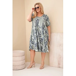 • Dámské viskózové šaty Plus Size s krátkým rukávem a model 22043104 střihem khaki - K-Fashion