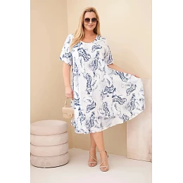 Dámské viskózové šaty Plus Size s krátkým rukávem a model 22043110 vzorem bílé - K-Fashion