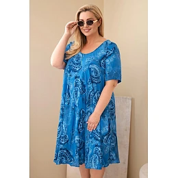Dámské viskózové šaty Plus Size s krátkým rukávem a paisley střihem chrpová