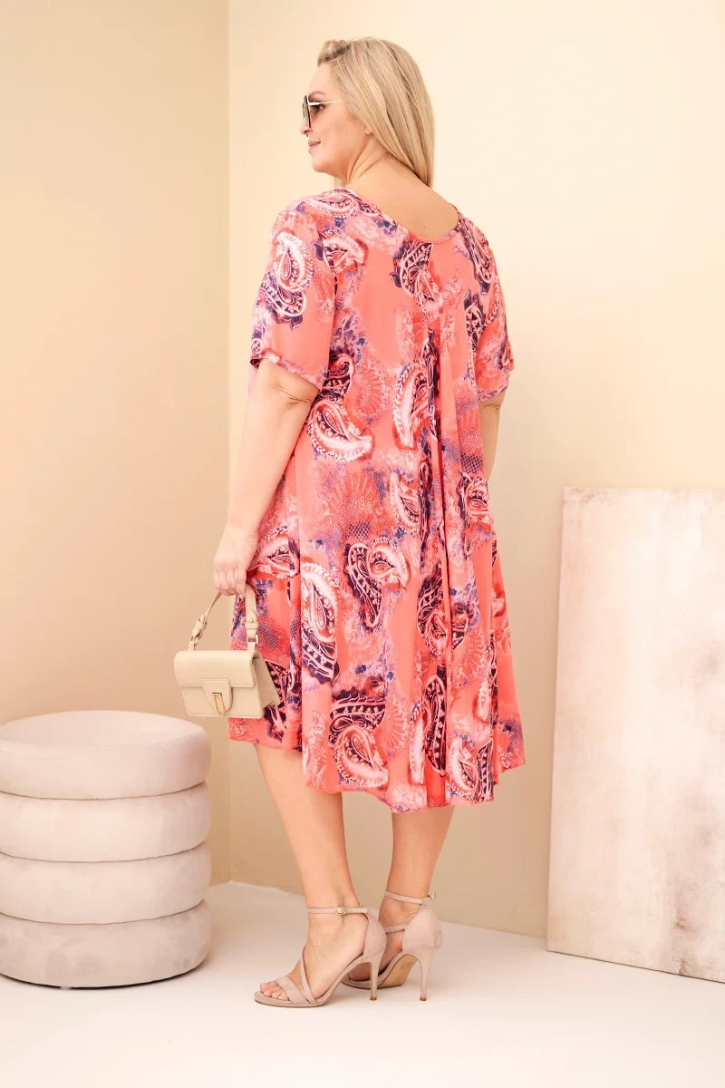 3. Dámské viskózové šaty Plus Size s krátkým rukávem a paisley střihem malinová