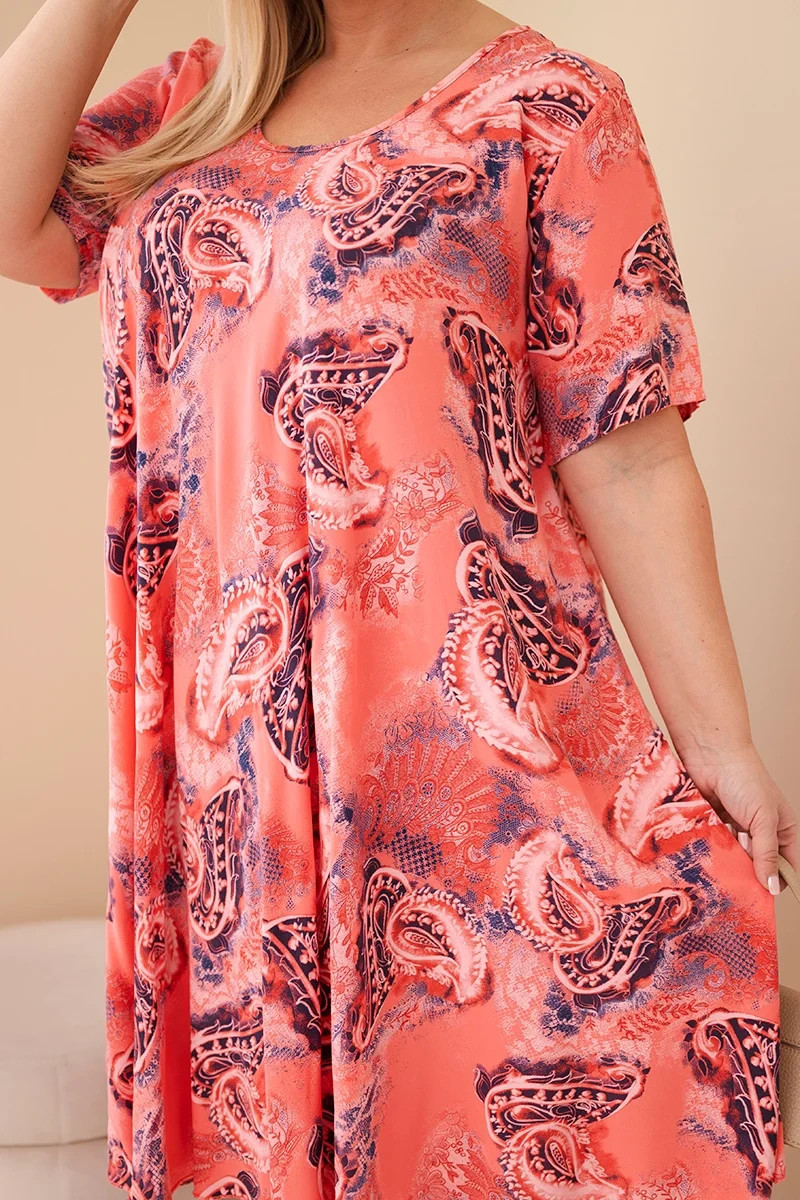 • Dámské viskózové šaty Plus Size s krátkým rukávem a paisley střihem malinová