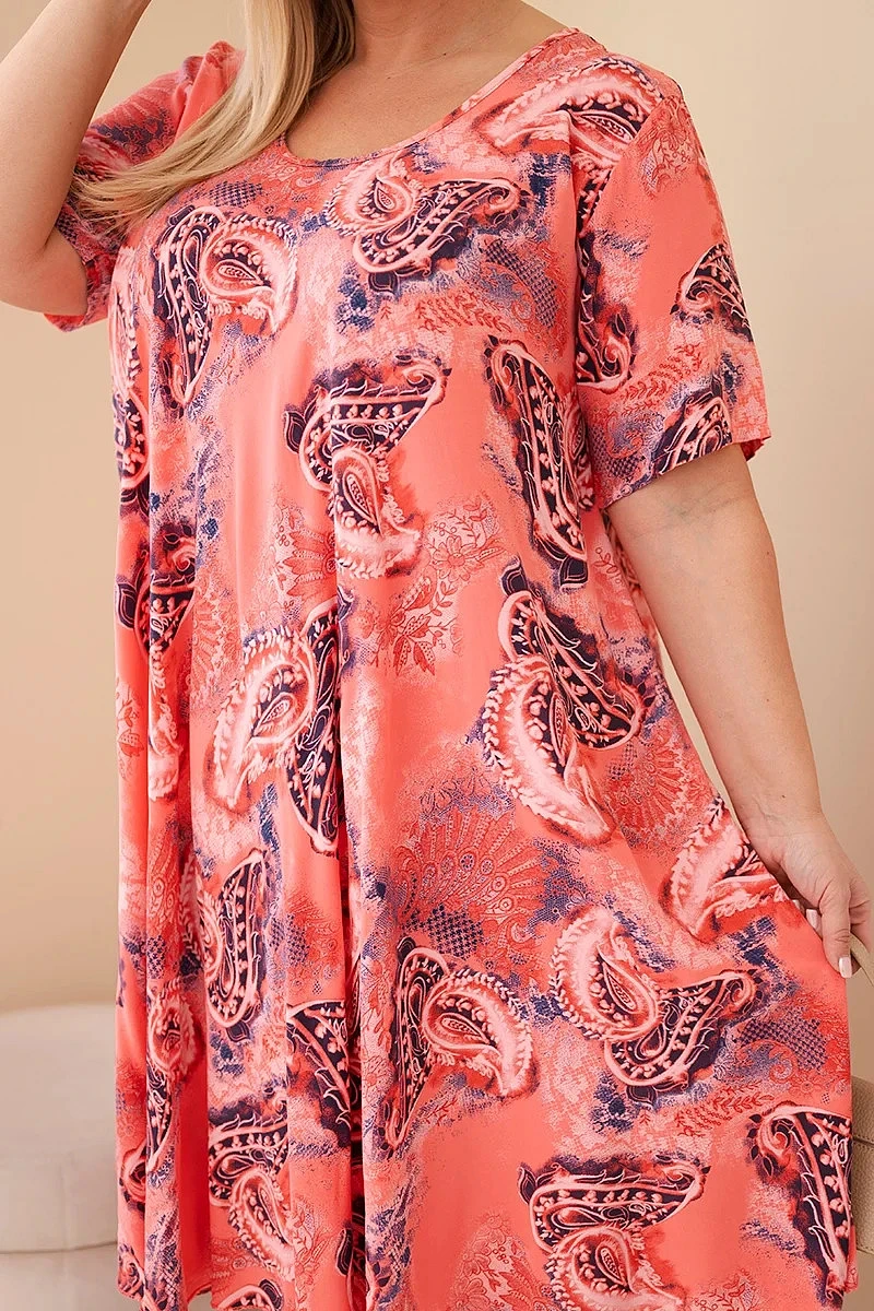 Dámské viskózové šaty Plus Size s krátkým rukávem a paisley střihem malinová