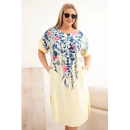 • Dámské viskózové šaty Plus Size s krátkým rukávem a rozparky na bocích žlutá