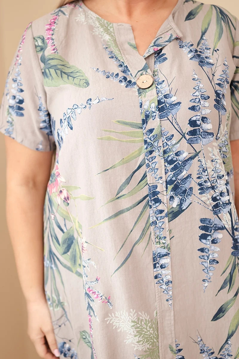 Dámské šaty Plus Size s krátkým rukávem jsou ideální volbou pro ženy, které si cení pohodlí a módního, ležérního stylu. Volný střih zajišťuje, že se šaty krásně přizpůsobí postavě a poskytují komfort po celý den. Jemný rostlinný vzor jim dodává svěžest a lehkost, díky čemuž se výborně hodí pro jarně-letní sezónu.