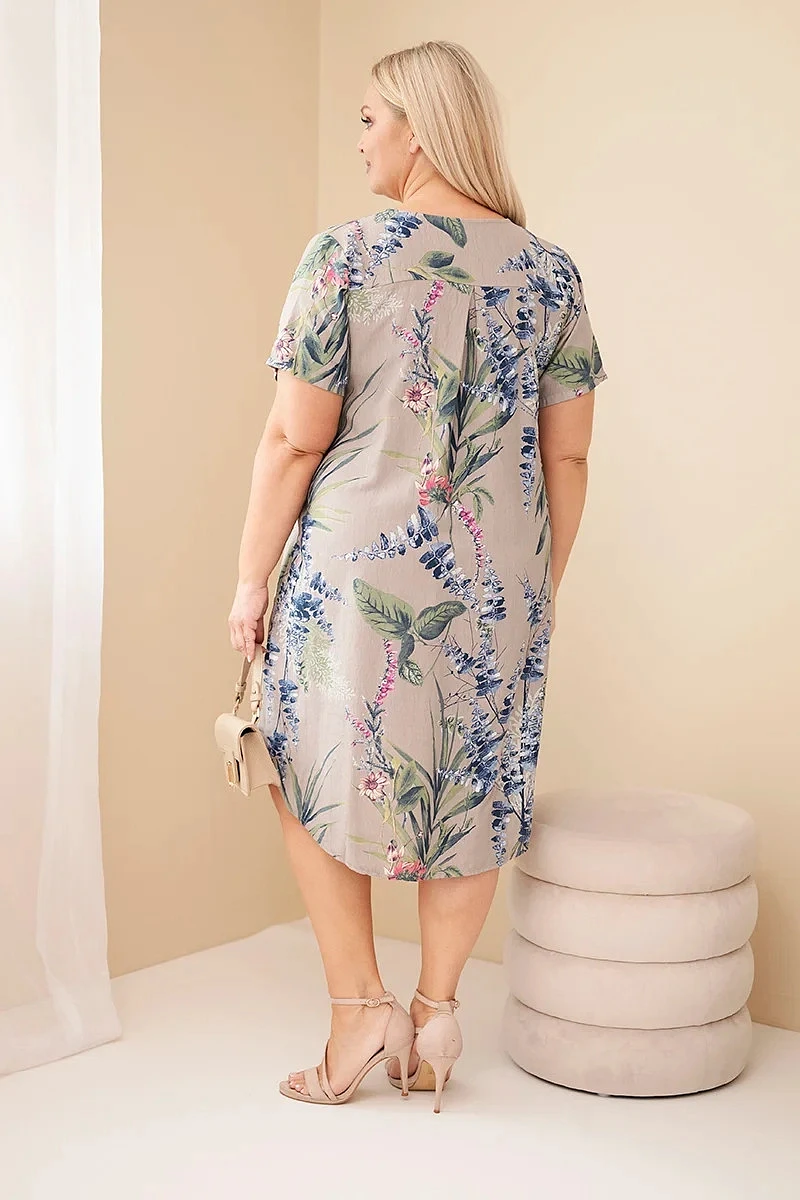 Dámské viskózové šaty Plus Size s krátkým rukávem a výstřihem na knoflíky fango