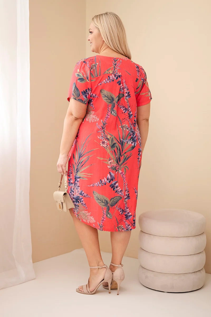 Dámské šaty Plus Size s krátkým rukávem jsou ideální volbou pro ženy, které si cení pohodlí a módního, ležérního stylu. Volný střih zajišťuje, že se šaty krásně přizpůsobí postavě a poskytují komfort po celý den. Jemný rostlinný vzor jim dodává svěžest a lehkost, díky čemuž se výborně hodí pro jarně-letní sezónu.