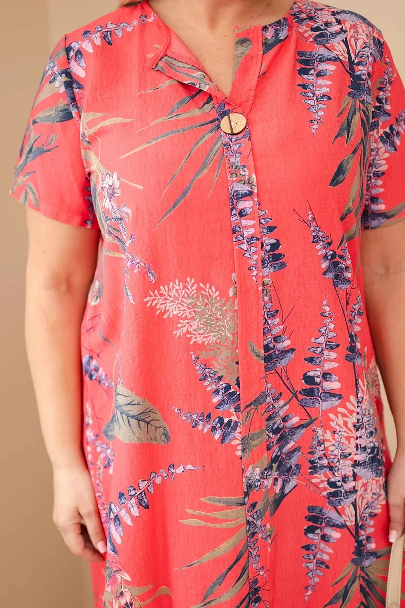 Dámské viskózové šaty Plus Size s krátkým rukávem a výstřihem na knoflíky malinová