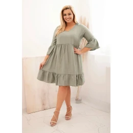 Dámské viskózové šaty Plus Size s model 22128545 ozdobou khaki - K-Fashion