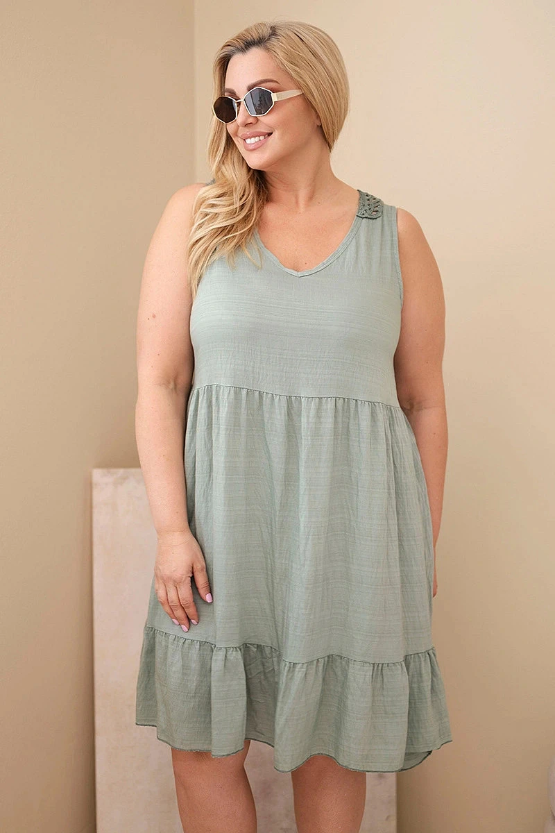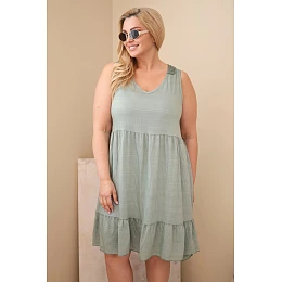 Dámské viskózové šaty pro plnoštíhlé bez rukávů s krajkou khaki