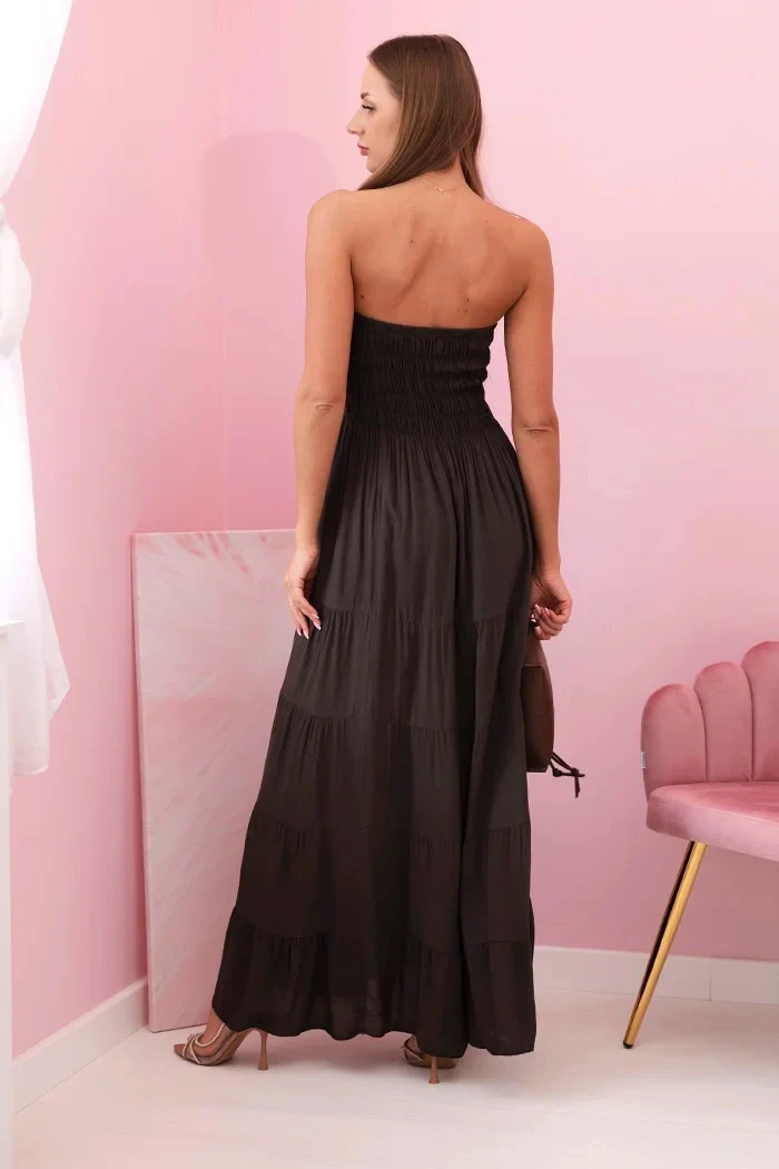 Dámské viskózové šaty s elastickým topem hnědý