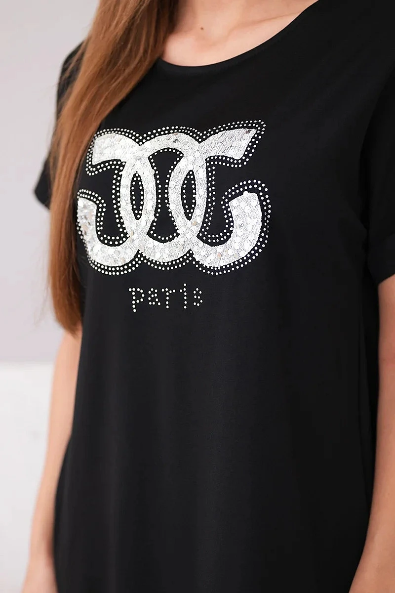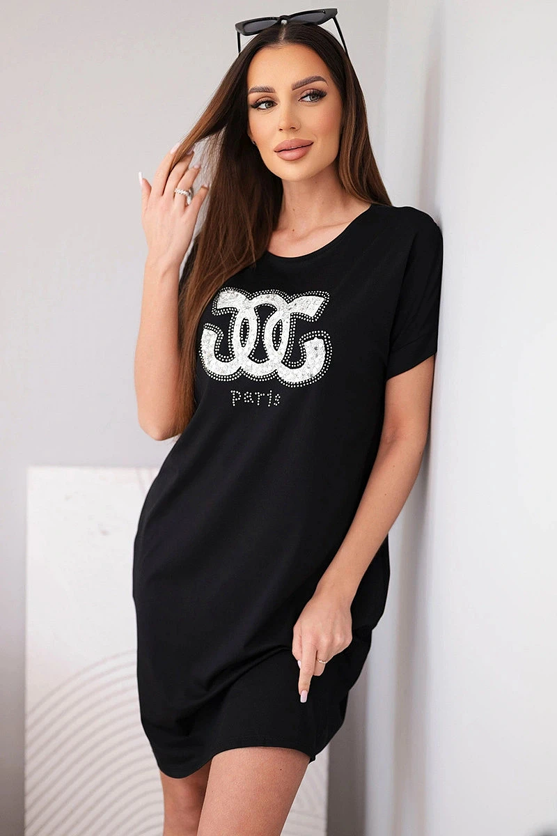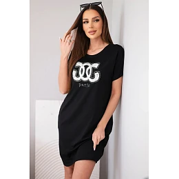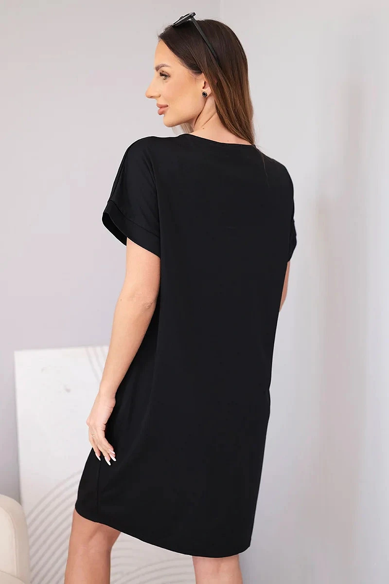 Dámské viskózové šaty s krátkým rukávem a ozdobným potiskem černá