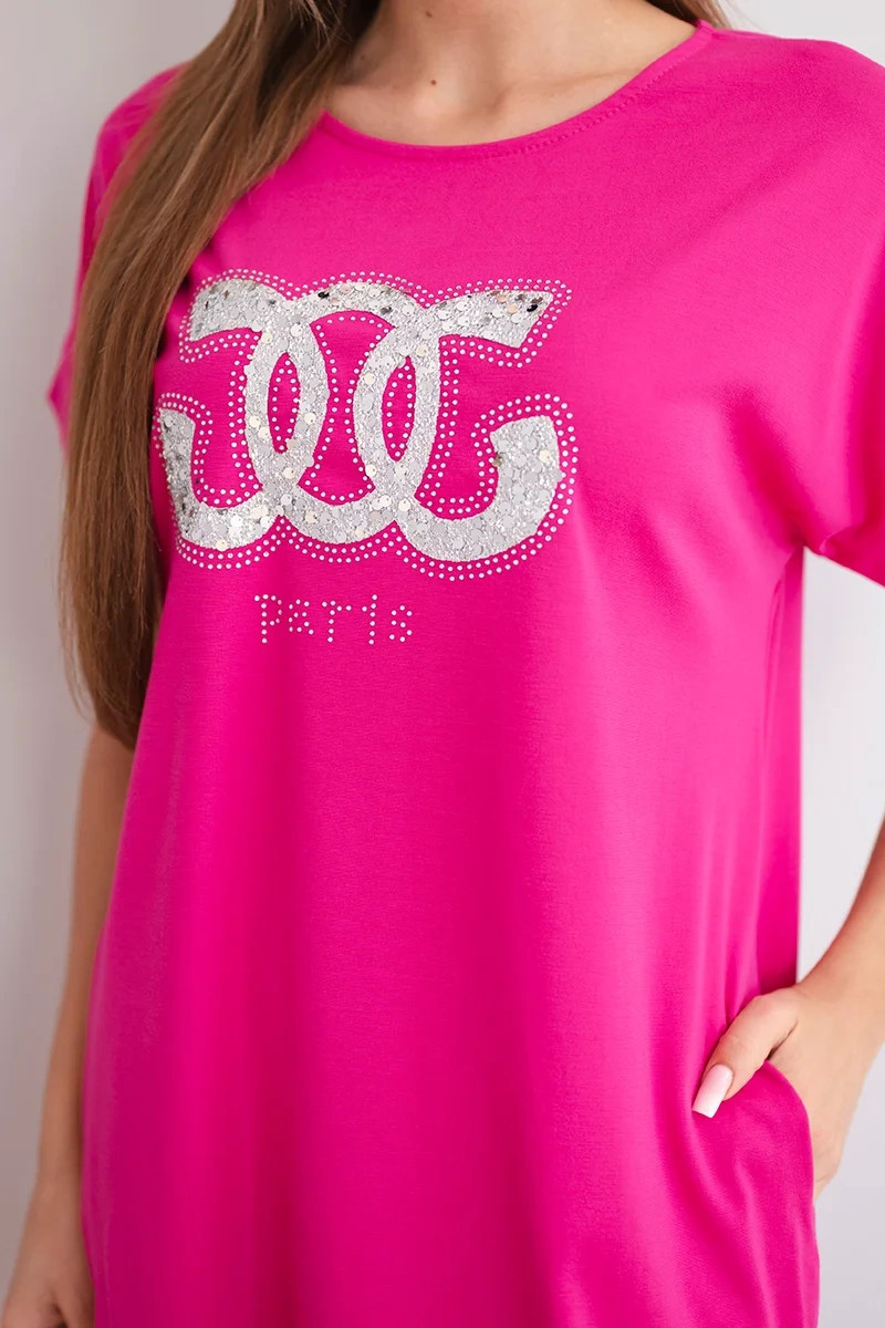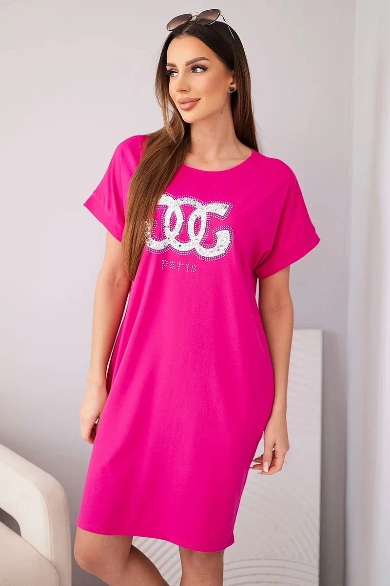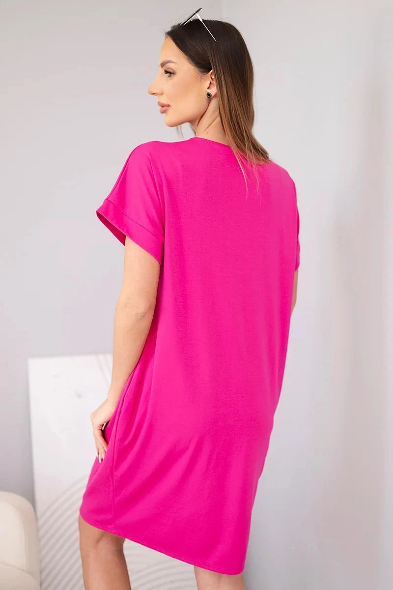 Dámské viskózové šaty s krátkým rukávem a ozdobným potiskem fuchsiová