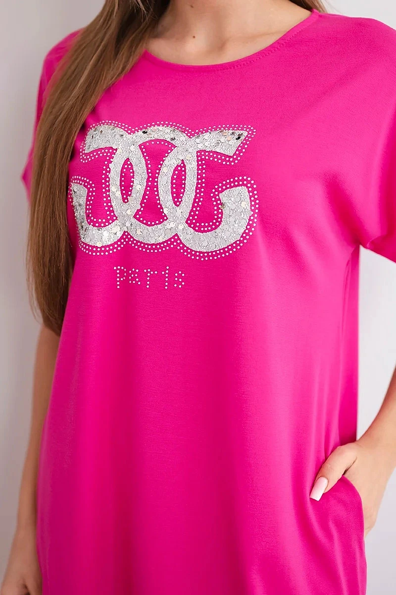 Dámské oversize šaty s krátkým rukávem jsou módní a pohodlnou volbou pro ženy, které si cení stylu a komfortu v každodenních outfitech. Volný střih způsobuje, že se šaty hezky přizpůsobí postavě, zajišťují volnost pohybu a lehkost nošení. Ozdobný potisk vpředu dodává charakter a přitahuje pozornost, čímž celku propůjčuje moderní vzhled.