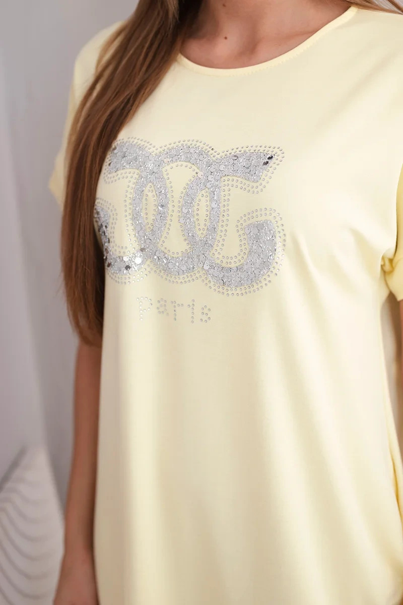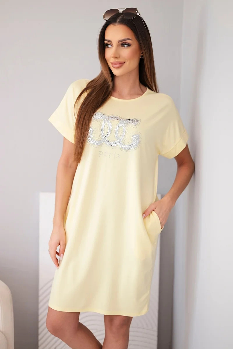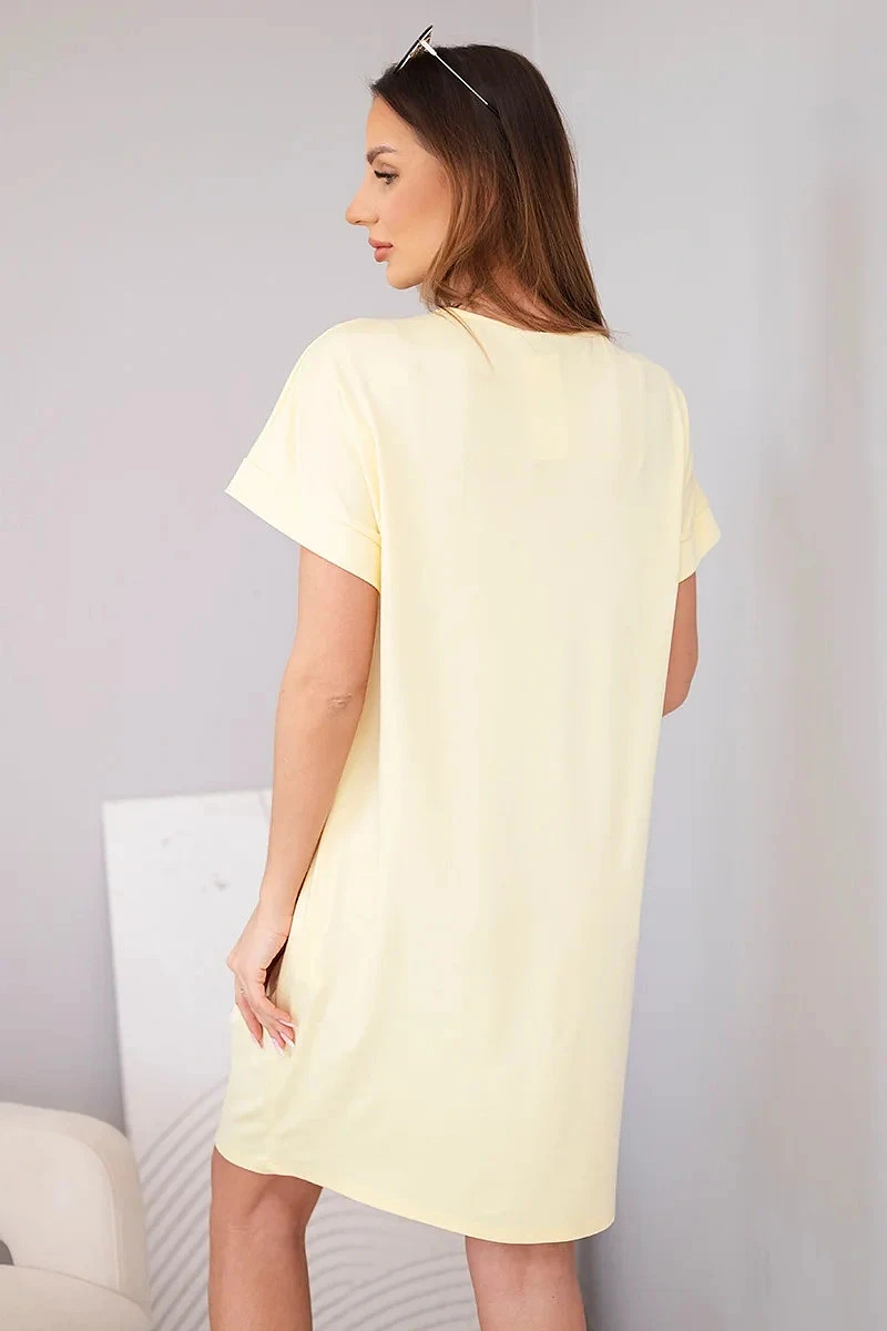 Dámské viskózové šaty s krátkým rukávem a ozdobným potiskem žlutá