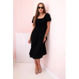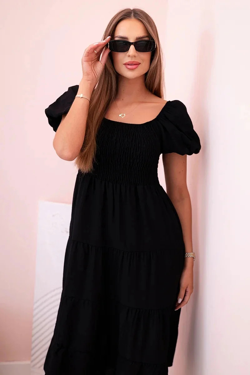 Dámské viskózové šaty s nabíranými rukávy a volánkovým topem černý