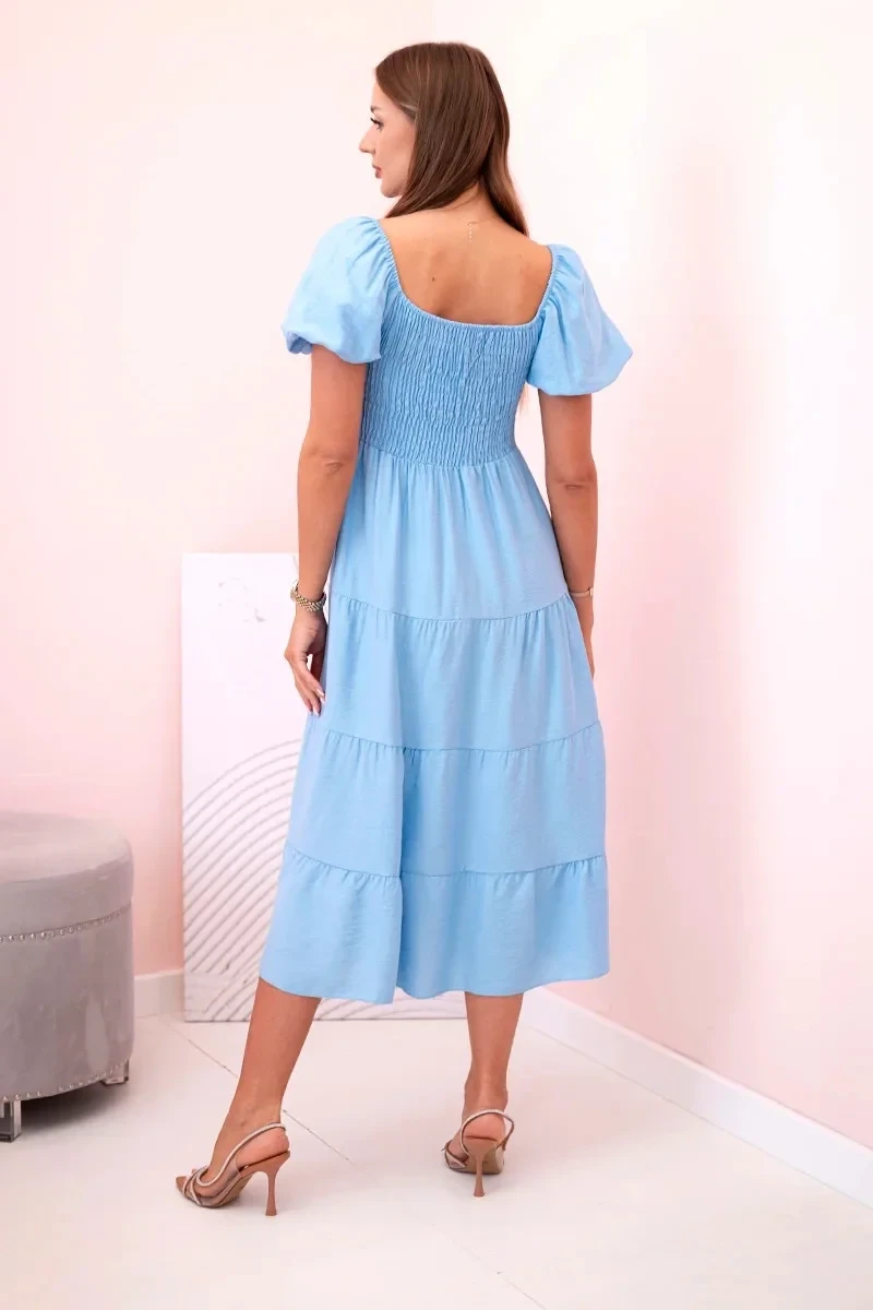 Dámské viskózové šaty s nabíranými rukávy a volánkovým topem modrý