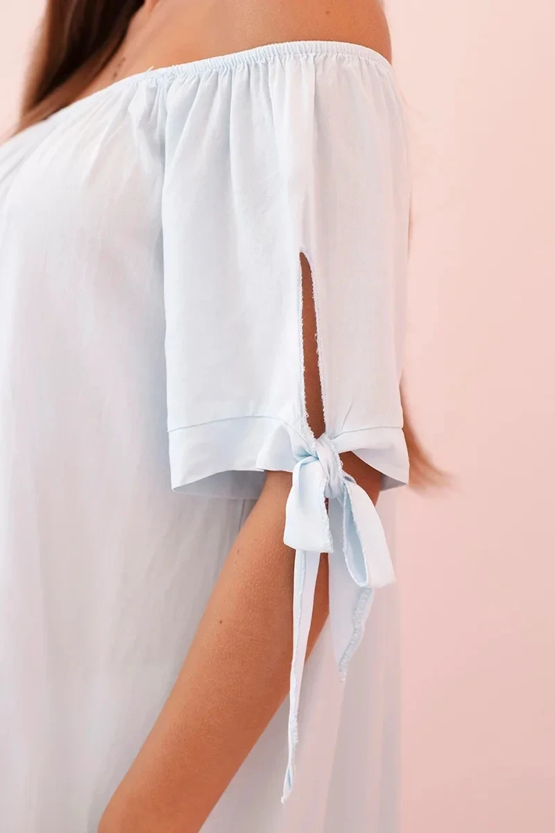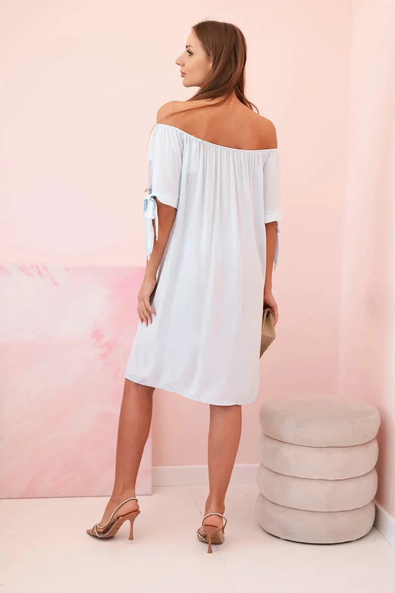 Dámské viskózové šaty s vázáním na rukávech modré