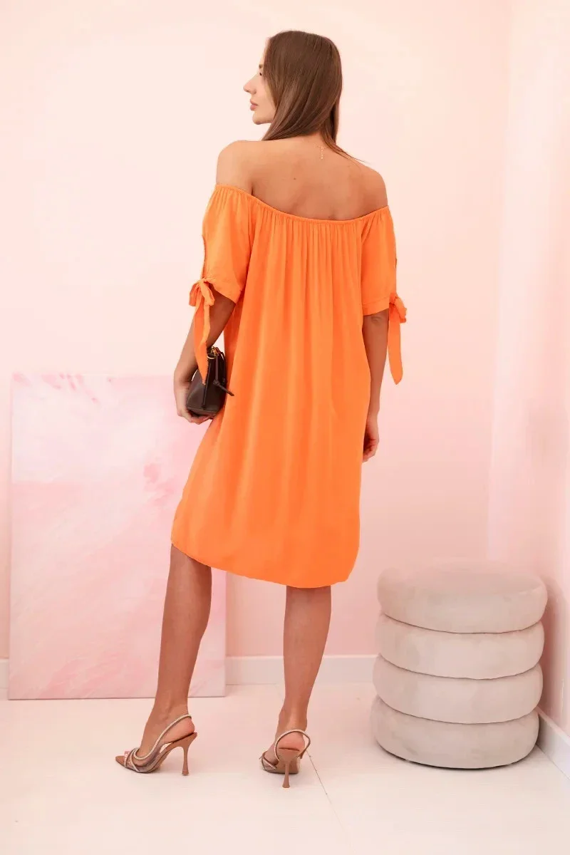 Dámské viskózové šaty s vázáním na rukávech oranžové