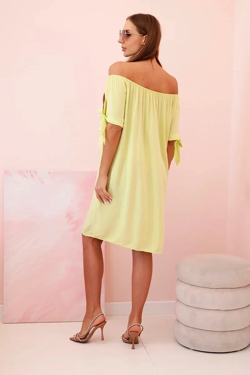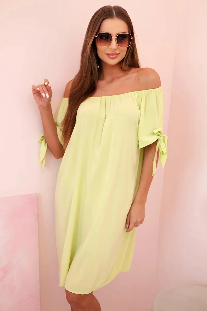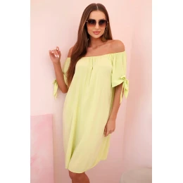 Dámské viskózové šaty s vázáním na rukávech pistáciové
