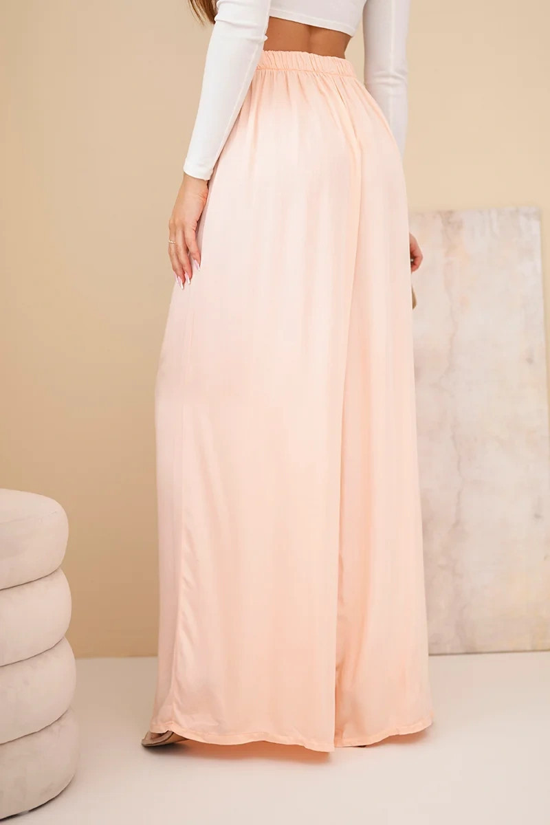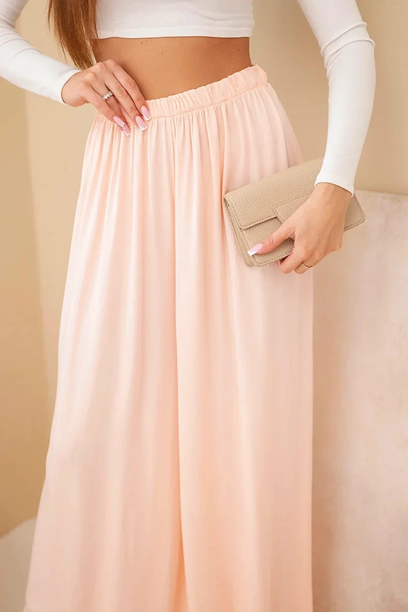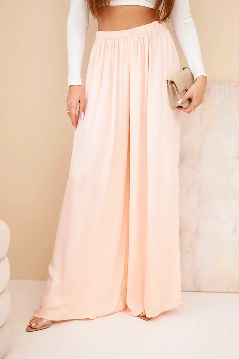 Dámské viskózové široké kalhoty s gumou v pase meruňkové