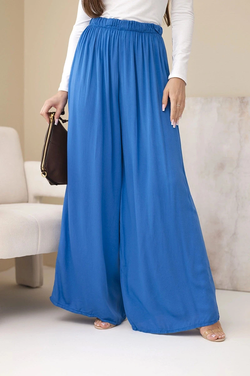 Dámské viskózové široké kalhoty s gumou v pase model 21924570 - K-Fashion
