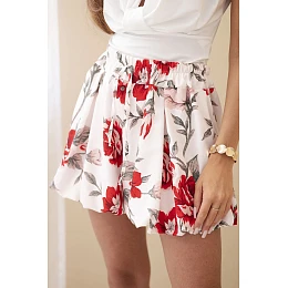 Dámské viskózové šortky s květinovým vzorem se zavazováním v pase červené