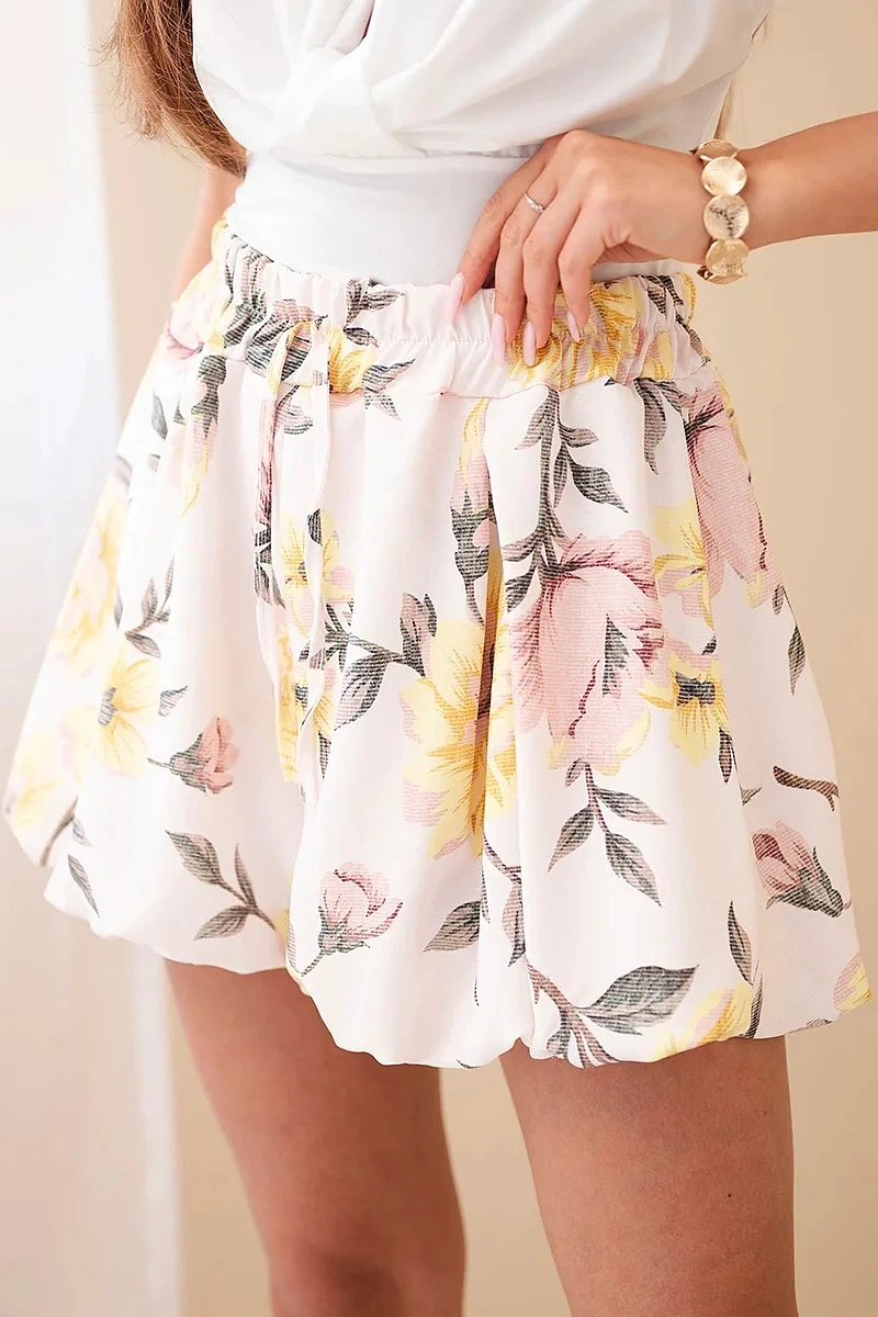 Dámské viskózové šortky s květinovým vzorem se zavazováním v pase žlutá