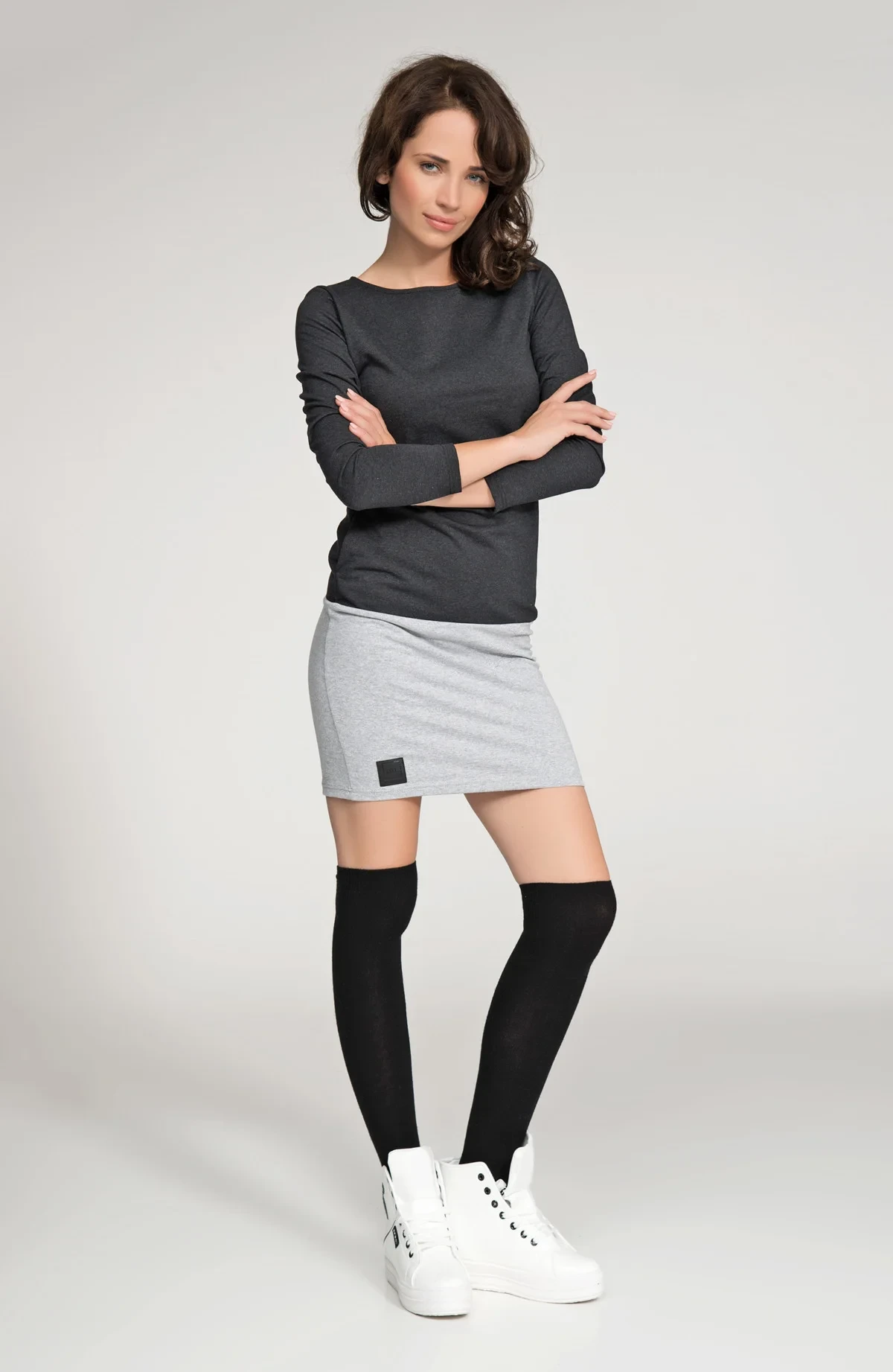 Dámské volnočasové šaty z teplákoviny. Jednoduché dámské šaty pro volný čas či na běžné nošení. Šaty mají dlouhý rukáv a kruhový výstřih. Tento modej je rovného střihu. Šaty mají v oblasti boků všité kapsy. Materiál, ze kterého jsou šaty vyrobeny je velmi příjmený na dotyk. Šaty jsou dlouhé nad kolena.