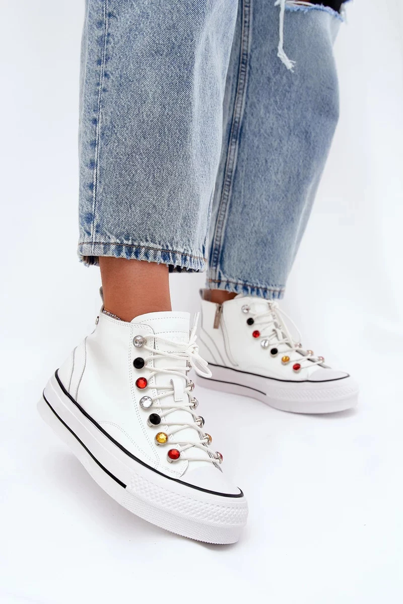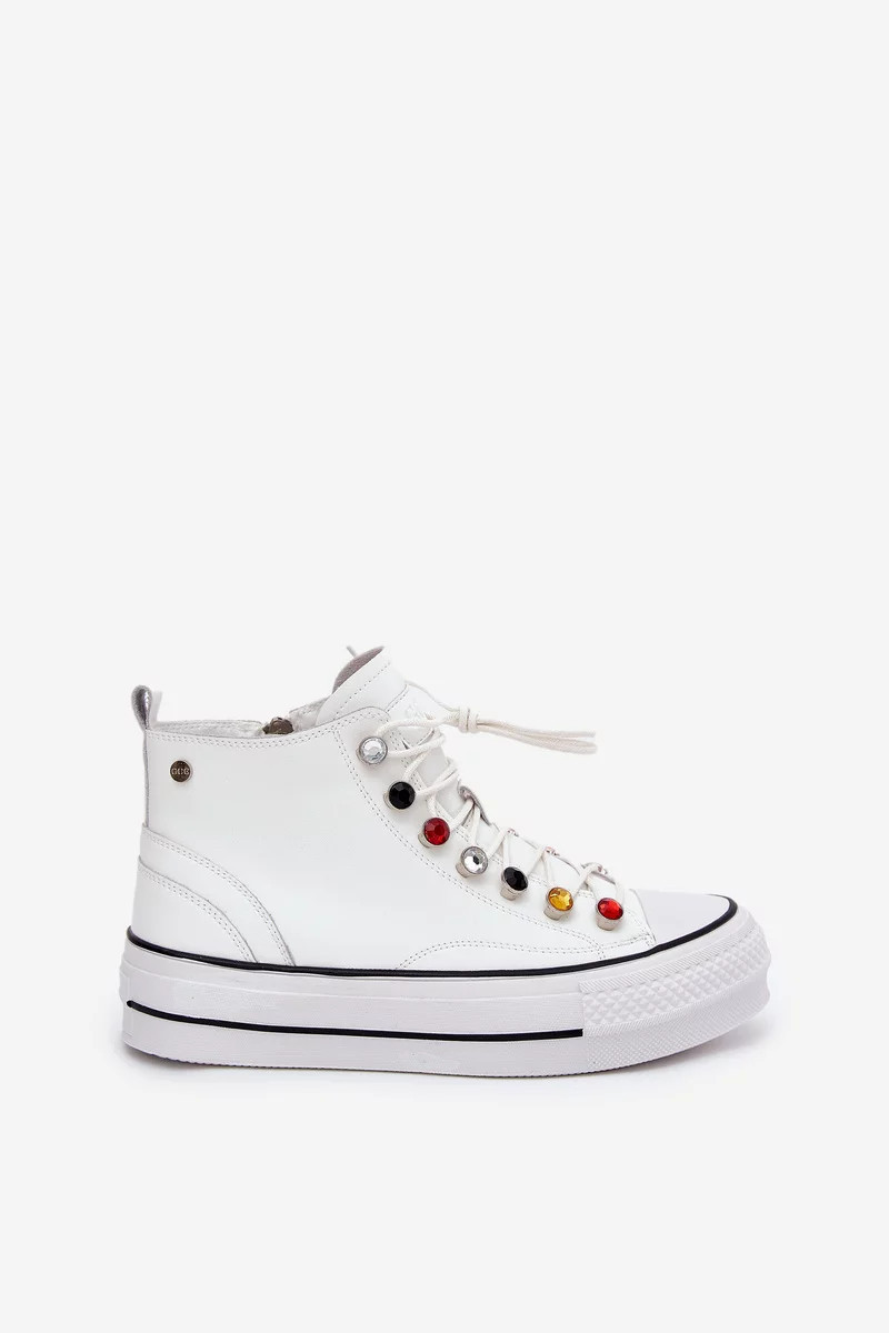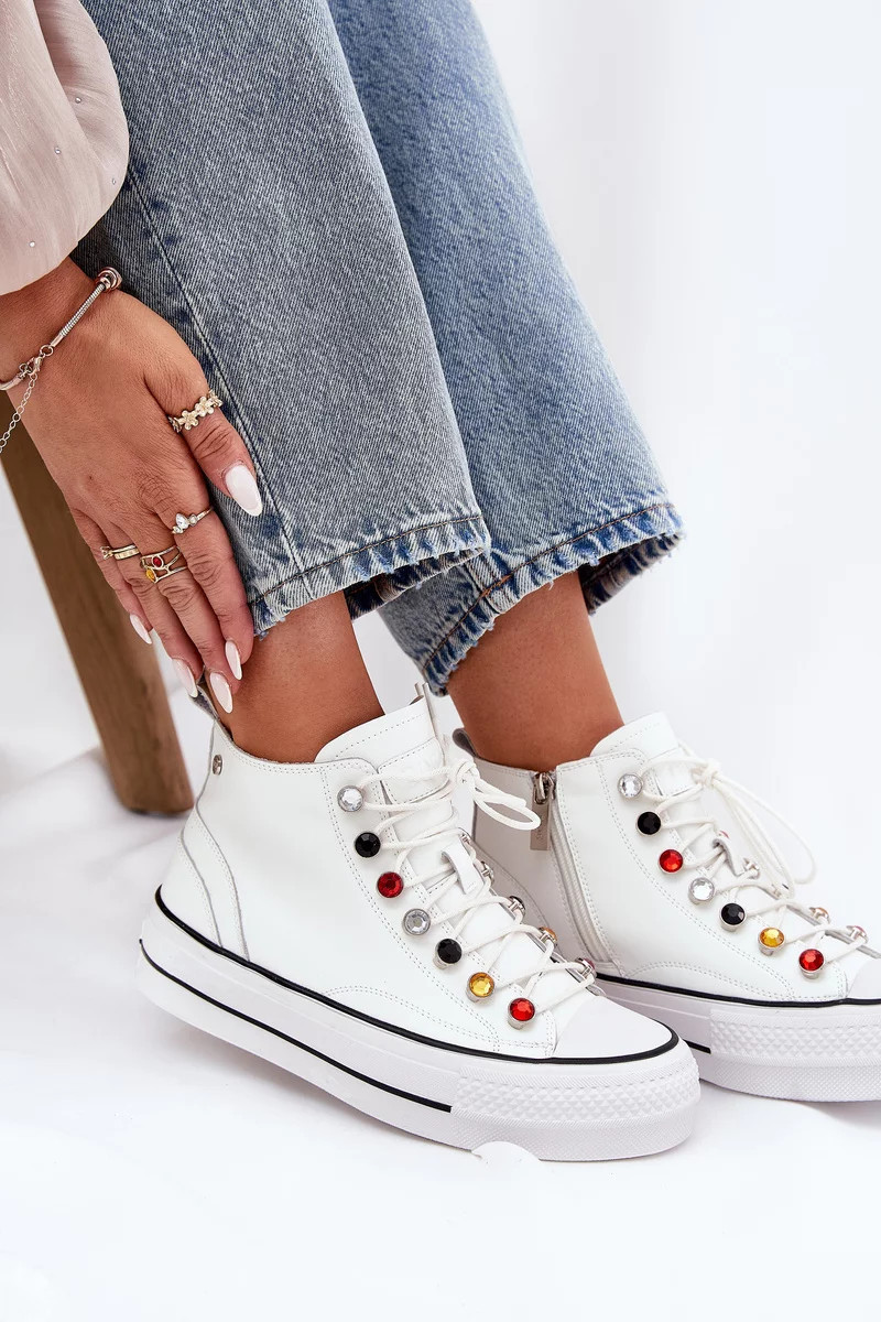 Dámské vysoké kožené trampky GOE v bílé barvě jsou ideální volbou pro ty, kdo chtějí pohodlnou volnočasovou obuv s čistým, moderním vzhledem. Kožený svršek působí elegantněji než klasický textil, je odolnější a při správné péči si dlouho udrží upravený vzhled. Vysoký střih ke kotníku dodává botám výraznější siluetu a poskytuje příjemnou oporu, takže se skvěle hodí do města i na cestování. Bílá barva působí svěže a snadno ji zkombinujete s džínami, legínami, sukní i šaty.