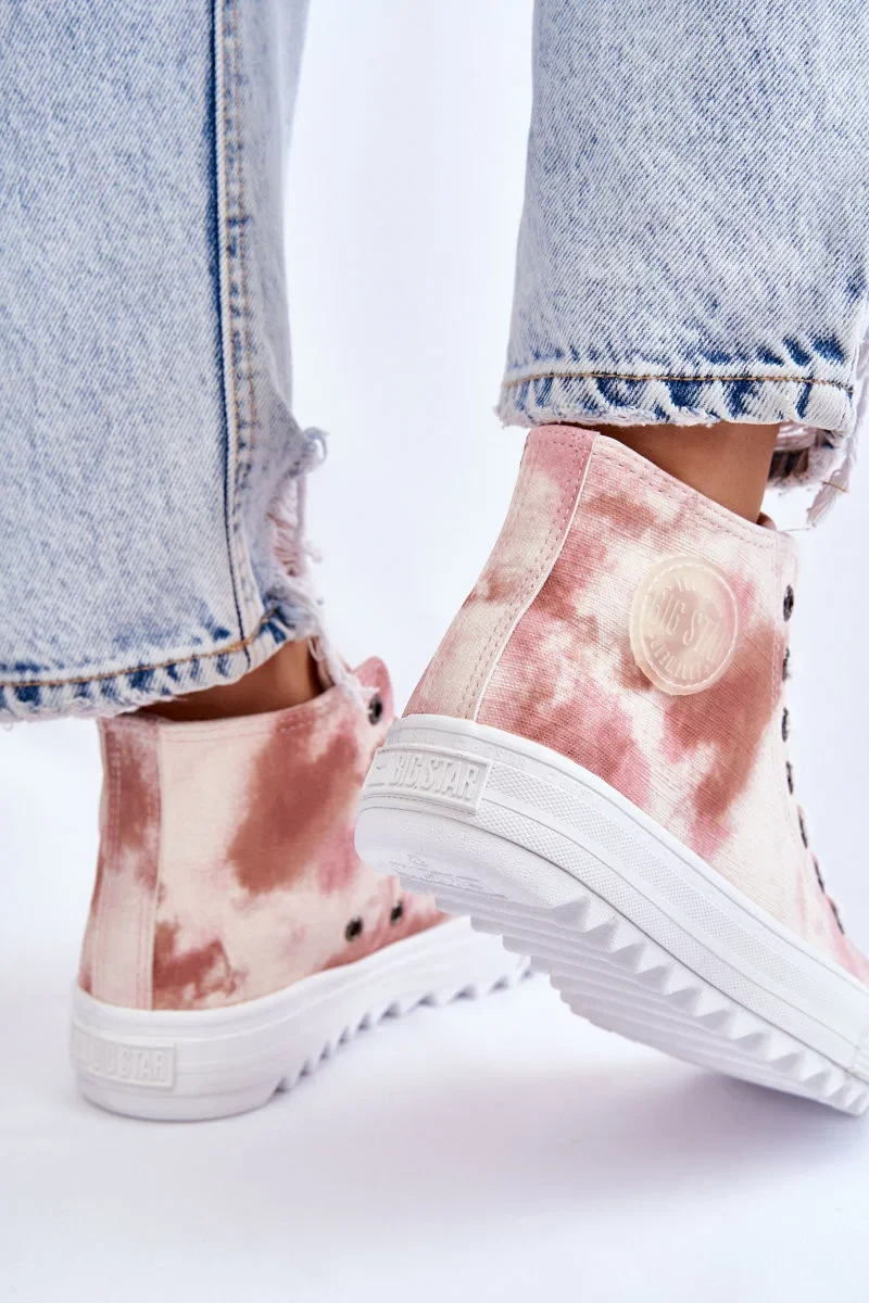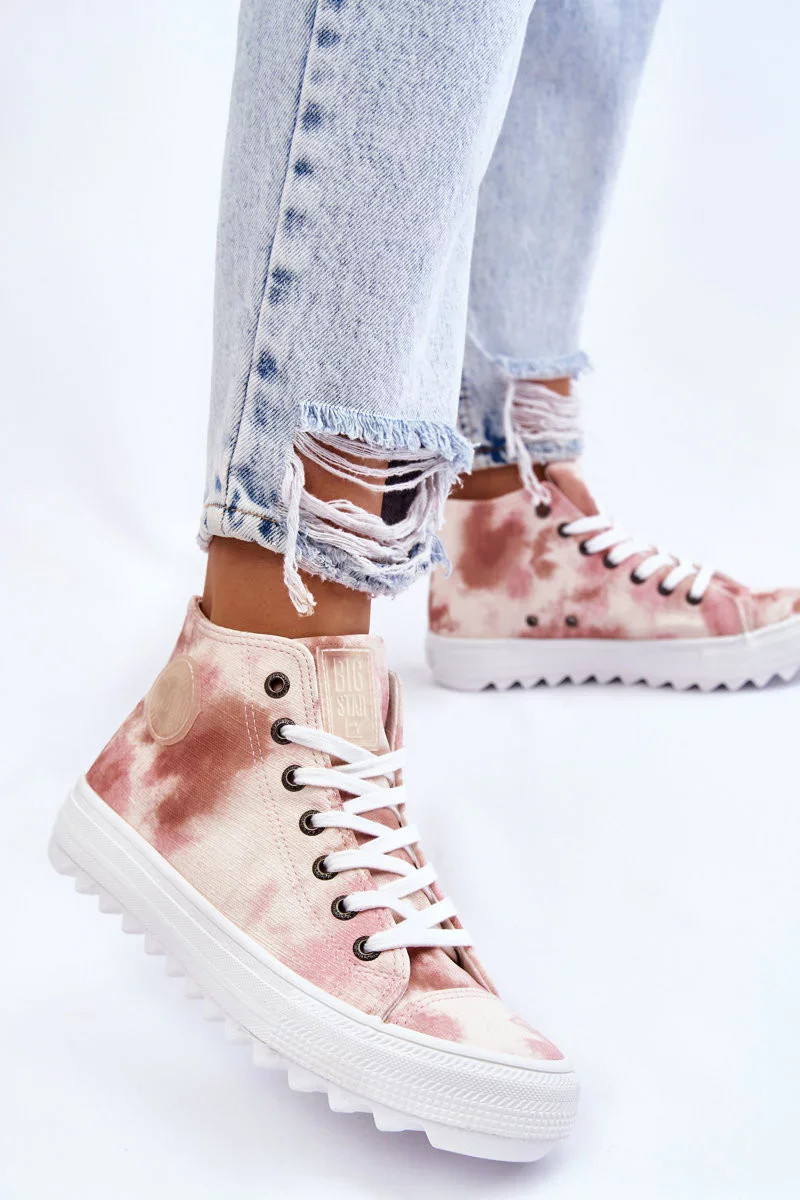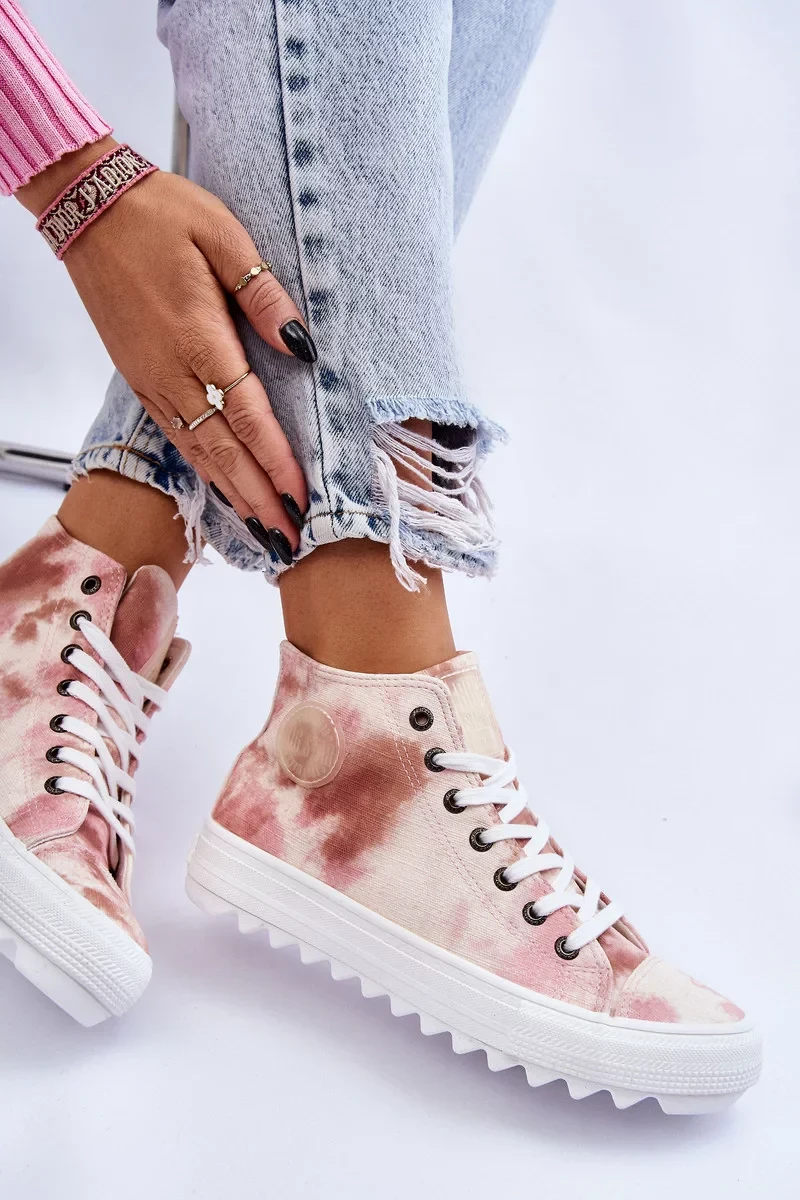 Dámské vysoké tenisky Big Star - béžová/růžová